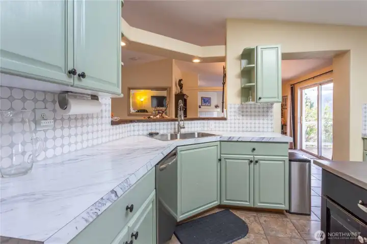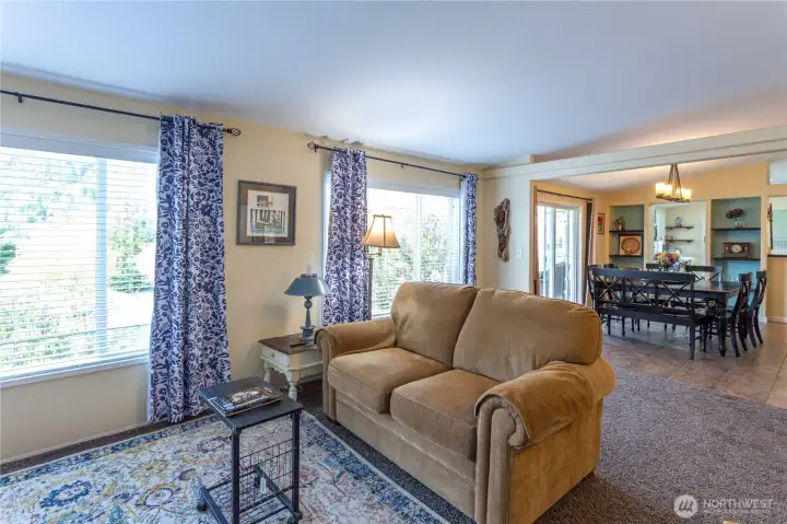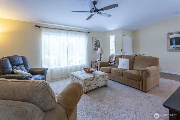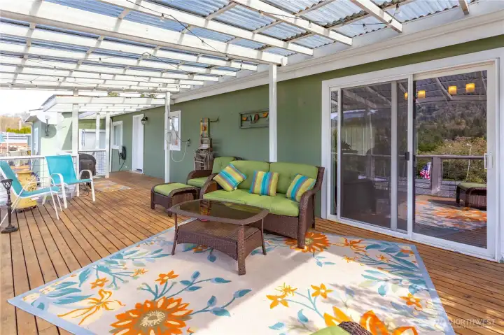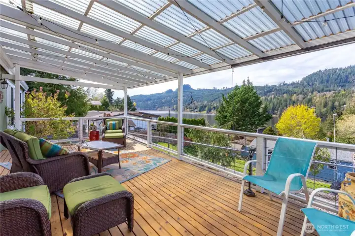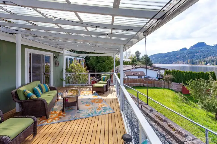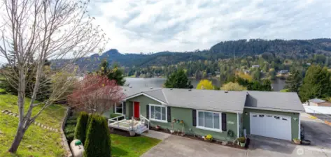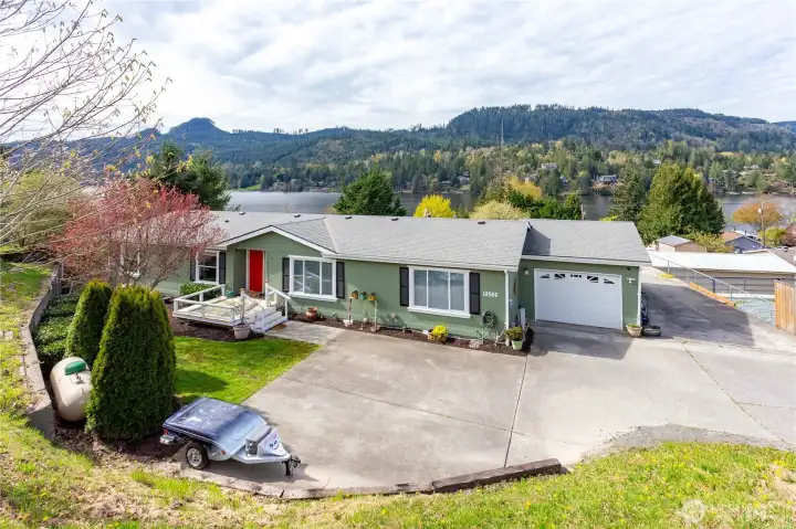 Panoramic lake views meet effortless living! This well maintained 3 bedroom, 2 bath home sits at a premier elevation above Big Lake, offering breathtaking 180 degree lake & mountain views. Easy single-level home offers comfort, flexibility & pride of ownership throughout. The interior boasts a large, airy layout with seamless transitions between the kitchen, dining & sprawling living areas—perfect for modern entertaining. Thoughtfully designed with private primary bedroom & bath on one end of home opposite the other 2 bedrooms. Plenty of room to spread out with 2 comfortable living areas great for large families or multi-generational living. Wonderful modern kitchen placed right in the heart of the home connecting living rooms, dining area & outdoor oasis. Step outside to breathe in the fresh air and take in the shimmering waters below on spacious deck perched perfectly above the lake. Paved driveway with plenty of room to pull in, park & turn around, attached garage with storage & easy to maintain yard with garden space/raised beds. Nice sized front porch & walkway connecting to large driveway. Covered area in rear for yard tools, chicken coop, storage or more. Experience the perfect blend of volume & views! Conveniently located off Hwy 9 in quaint community of Big Lake close to Mt Vernon or Sedro Woolley amenities & I-5. All appliances stay, including new washer/dryer set. Clean, cared for & truly turnkey—ready for you to settle in & enjoy!