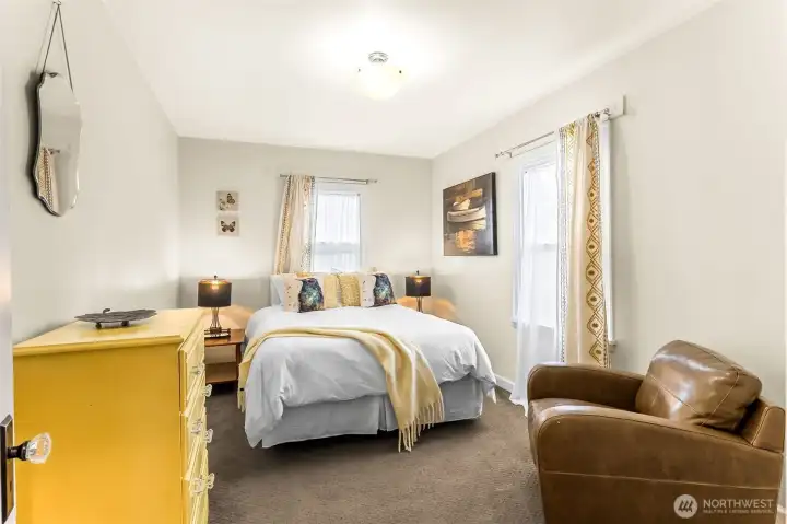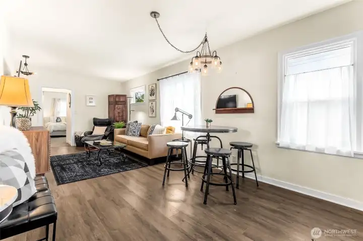 Darling 1925 bungalow in the heart of Downtown Olympia. Former, profitable, AirBnb and Travel Nurse rental, consistently booked. Bright updated kitchen with Marmoleum floors, butcher block counters, open shelving, newer cabinets and appliances. Updated accessible bathroom meets code, Marmoleum floors, newer vanity. 2 bedrooms on main, 1 larger bedroom upstairs. Updated vinyl windows, vinyl plank flooring, light fixtures, plumbing, electrical, garage door. Gated courtyard has hot tub wire. 1200 SF basement/garage accessed from North side of home (enter from Legion). Parking on street and behind home. ALL furnishings may be included/negotiated for turn-key short or mid-term rental. With full price offer, seller will replace roof and install 2 head mini split ductless HVAC on main and upper floors. Seller may carry contract with 20% down, 2 year balloon, 10% interest, 30 yr am. Seller is a licensed broker in the State of WA. Double listed commercial.
