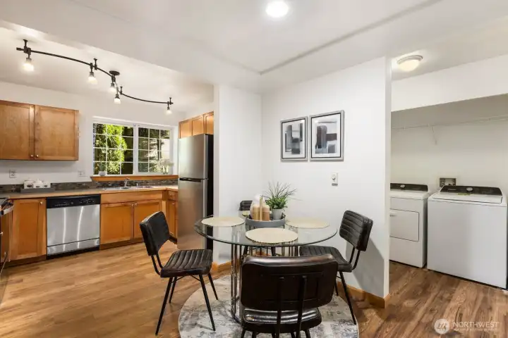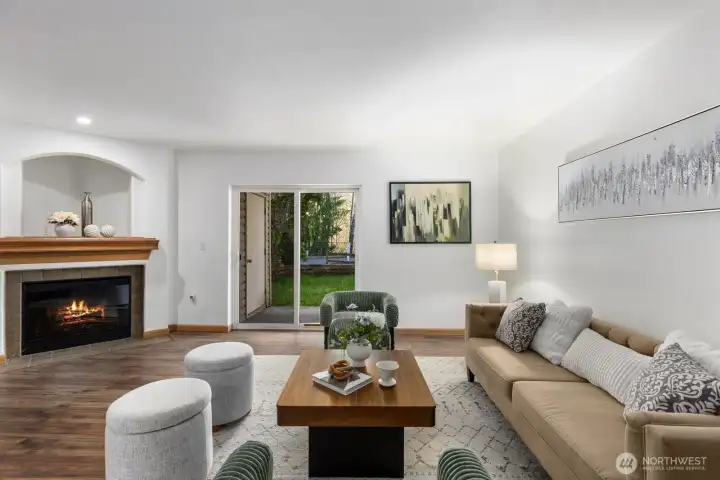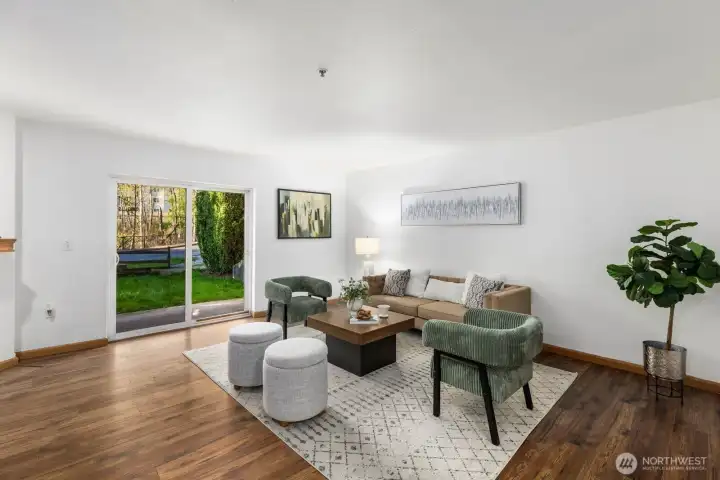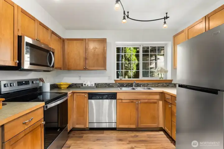 Rarely available walk-out level end unit offering 2 bedrooms and 2 full bathrooms! This beautifully updated condo features fresh interior paint and newer flooring throughout. The open-concept kitchen shines with ample cabinet space and a sparkling stainless steel appliance package—including a newer stove, a brand-new microwave, and a brand-new refrigerator. Enjoy the convenience of an in-unit washer and dryer, plus a spacious primary suite with an attached bath. Step outside to your private patio with additional storage and direct yard access. Unbeatable location with quick, easy access to freeways, public transit, major shopping, and entertainment. Move-in ready!