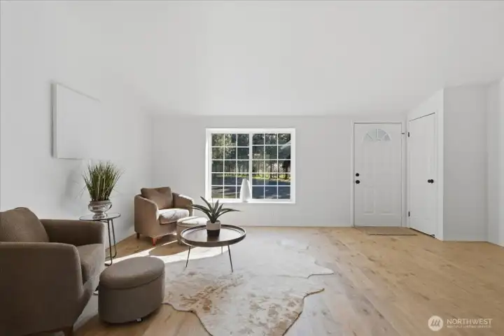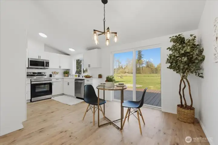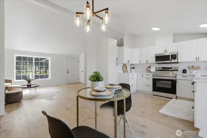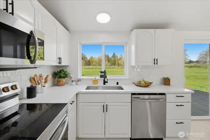 Completely remodeled and move-in ready on 2 flat acres in a quiet rural setting with sweeping territorial views! This 1352 sf home features a vaulted, open and bright great room with luxury vinyl plank flooring, fresh interior and exterior paint, and new carpet throughout. The beautifully updated kitchen offers quartz countertops and new stainless appliances. Vaulted ceilings enhance the spacious feel, while the attached 2-car garage adds convenience. Enjoy peaceful country living with modern finishes- This is a must-see!