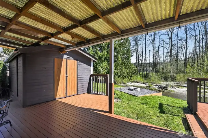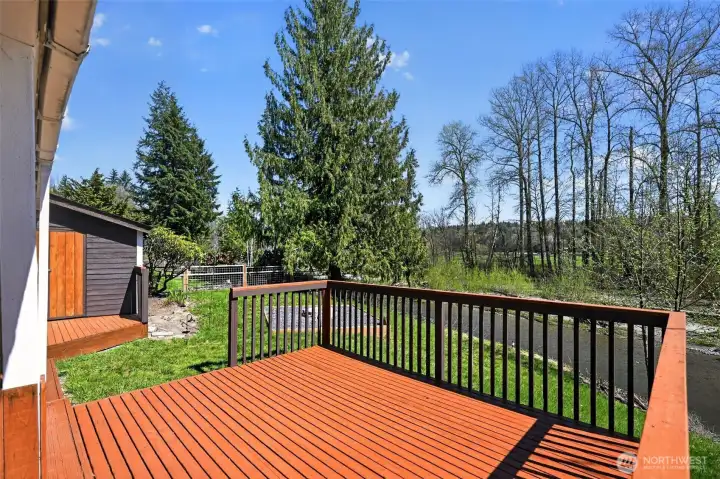 Fish from your own back yard. Shy 1/2 acre home situated on the beautiful Pilchuck River. Open floor plan with large 4 bedrooms, 2 full baths. Kitchen has eat in bar and butlers pantry. Brand new roof installed. Master bedroom with walk in closet. Bath off the master bedroom with jetted tub. Huge deck for entertaining and BBQ. Shed outside. Excellent school district. Septic tank has been inspected & pumped recently.