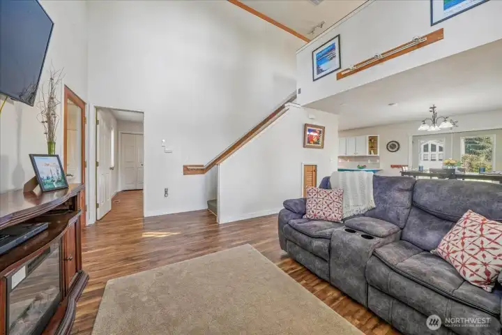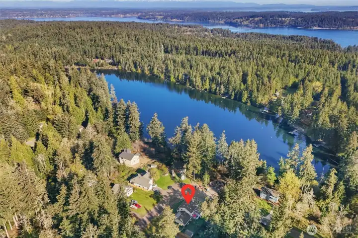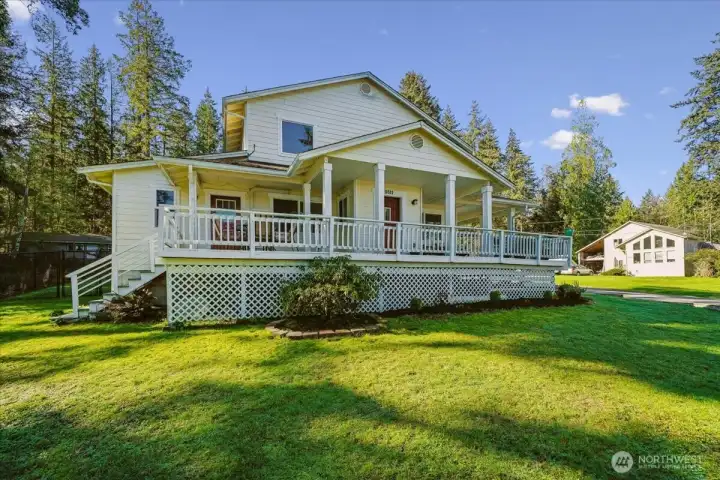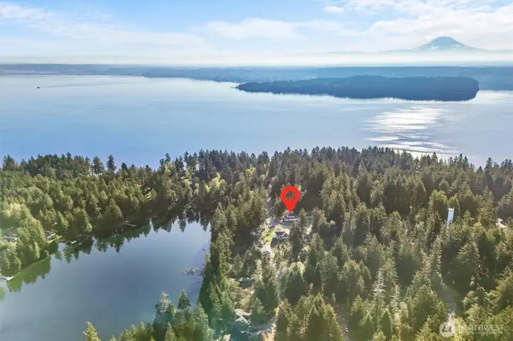 Experience the pinnacle of Anderson Island living in this sun-drenched 3-bed, 1.75 bath home perfectly perched on a corner lot overlooking the shimmering waters of Lake Florence. Step inside to a soaring great room where vaulted ceilings & ample windows invite an abundance of natural light. You will love the upgraded kitchen, featuring premium quartz countertops, solid wood cabinetry, newer stainless steel appliances, & a convenient eat-in peninsula that makes both daily living & entertaining a breeze. The main floor also hosts 2 comfortable bedrooms, full bath with Jack-Jill setup, and easy access to the expansive wraparound deck, where you can watch bald eagles soar & deer wander by against a backdrop of lake views. Upstairs, discover a versatile loft space ideal for a home office, family room, or flex space. The generous primary suite boasts dual walk-in closets and a spacious ensuite bathroom featuring double sinks and a brand-new shower insert. This efficient home also features ductless mini splits and solar panels over the 2-car garage, which take full advantage of the home’s sunny location to help keep energy costs low. The fully fenced backyard provides a private oasis with mature fruit trees & garden space. Adjacent lot also available to purchase. Located a brief 2 min drive to the boat launch & park spanning 2 lakes. Enjoy access to all the premier Riviera HOA amenities—including golf, tennis, marina, & more—this home offers the very best of Island Life. View today!