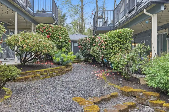 dappled sunlight flickers through the big trees creating a peaceful surround.
