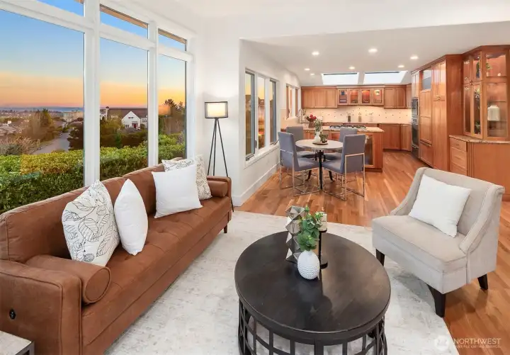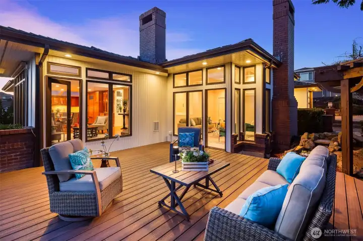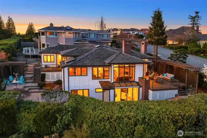 Perched at the crown of Summit on a coveted view loop, this East facing former Street of Dreams Poncho Award-winning home captures sweeping Mount Rainier views and all-day natural light. Thoughtfully designed for both comfort and entertaining, the home features a main-level primary suite with a private view deck, along with refined living and dining spaces that balance elegance with everyday livability. With over $150K in thoughtfully curated upgrades, the home is truly move-in ready. Interiors showcase new hardwood floors, plush carpeting, fresh paint, and updated lighting, while the exterior has been extensively refreshed with new siding, windows, and garage doors. New HVAC, including air conditioning and furnace, ensures year-round comfort. Expansive new decks and surrounding walkways create effortless indoor-outdoor living. The daylight lower level offers exceptional flexibility, with additional bedrooms and a spacious rec and media lounge—ideal for guests, extended living, or a dedicated work-from-home retreat. Residents enjoy direct access to the Summit Clubhouse, featuring a fitness center, full kitchen event space, seasonal pool, and tennis and pickleball courts, all within a gated community with guard house security. Located just minutes from premier parks, top-rated Bellevue schools, and downtown Bellevue, with easy access to I-405 and I-90. Architecturally distinctive and extensively upgraded, this is a rare offering in one of Summit’s most sought-after settings.