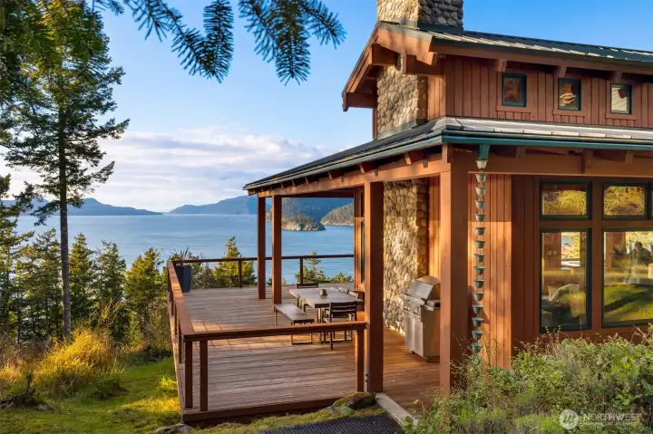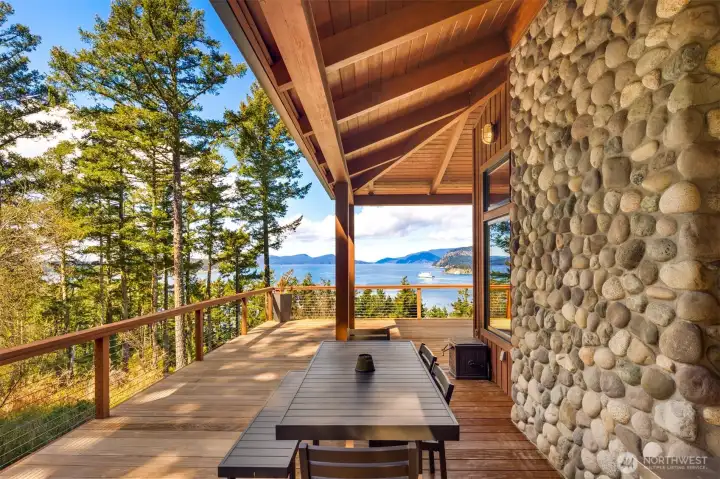 Enjoy sunset dinners from the covered area on the deck.