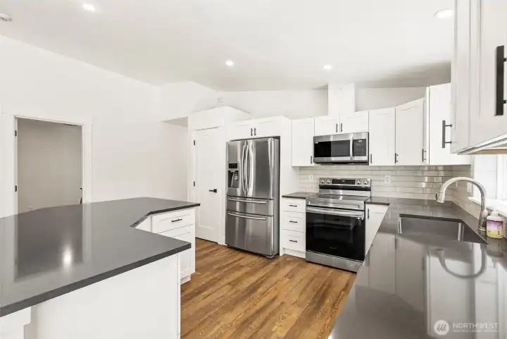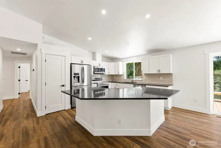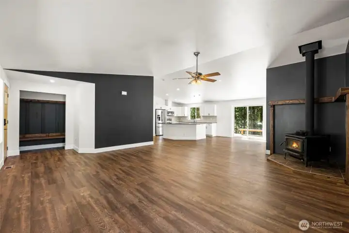 Welcome home to your own slice of Pacific Northwest paradise where 5 private wooded acres invites you to breathe deeper, live slower, and enjoy the beauty all around you. This fully updated 2,112 sq ft home offers an open layout filled with natural light, perfect for gathering, hosting, and everyday living. With 3 spacious bedrooms plus an office with a closet that can easily function as a 4th bedroom, and 2 full bathrooms, there is room for everyone feel at home. The primary suite is a peaceful retreat with sliding glass door to the deck and a beautifully remodeled en suite bath. The kitchen is designed function with generous prep space, abundant storage, and all appliances included. You will appreciate the many recent updates including brand new flooring, millwork, interior doors, fresh interior paint, a newer furnace and heat pump, and a brand new roof installed in 2025. Cozy up by the wood-burning stove and enjoy the comfort of home in every season. Step outside and explore your own private trails, space for an archery range, or enjoy the existing pens ready for chickens or goats, making this property ideal for your lifestyle. An oversized attached 2 car garage, spacious mudroom, and plenty of RV and boat parking add to the functionality of this incredible property. Tucked away in a serene setting yet still within a reasonable distance to everyday amenities and with no HOA, this home offers the perfect balance of privacy, freedom, and convenience.