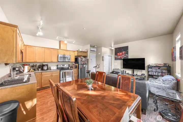 Inviting light filled living awaits in this beautifully maintained One bedroom, one bath residence at the sought after Village at Garden Green in Lynden. Thoughtfully designed with an open, airy layout, this elegant condo is filled with natural light and offers a seamless blend of comfort and style. Enjoy low-maintenance living in a well-appointed community, just moments from charming downtown Lynden, boutique shopping, and dining. A rare opportunity for effortless living or a sophisticated investment. Vacant July 1 and ready for its next owner.