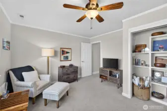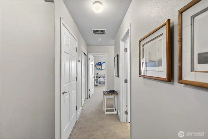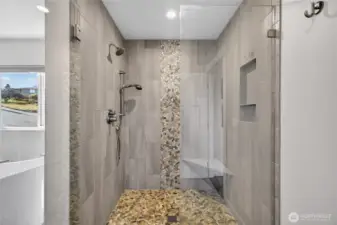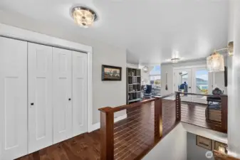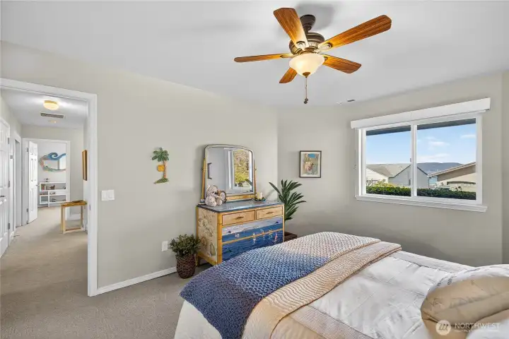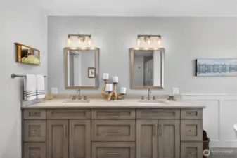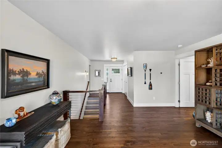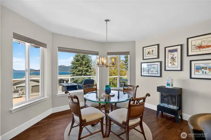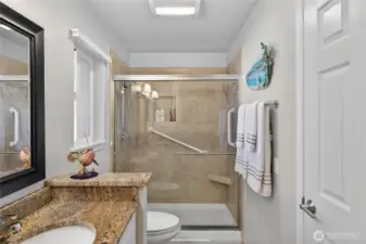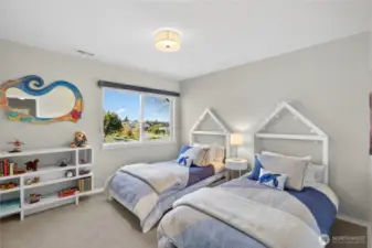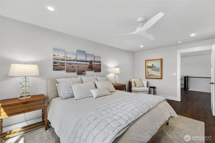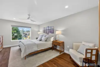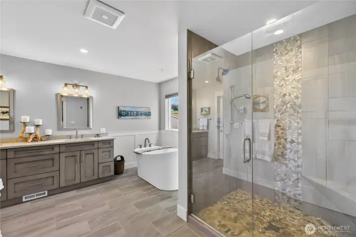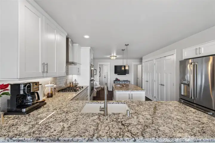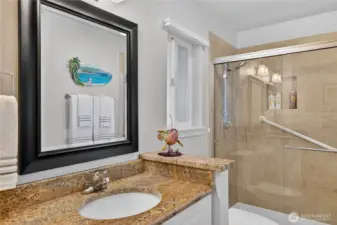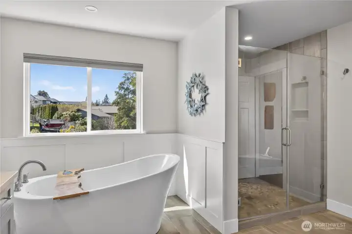 Perched on a beautifully landscaped corner lot, this light-filled home captures sweeping water, island, and mountain views that define the Pacific Northwest lifestyle. Step inside to an inviting open-concept layout where rich hardwood floors, vaulted ceilings, and a stunning stone fireplace create a warm, elevated living space designed for both everyday comfort and effortless entertaining. The chef-inspired kitchen features expansive granite countertops, crisp white cabinetry, stainless steel appliances, and a generous island that flows seamlessly into the dining and living areas. Large windows frame breathtaking views, bringing natural beauty indoors. Unwind in the spa-like primary suite with a luxurious walk-in tile shower and serene soaking tub, thoughtfully designed for relaxation. Outdoor living shines with an expansive view deck—perfect for morning coffee or sunset gatherings—overlooking the water and surrounding neighborhood. The meticulously maintained grounds offer striking curb appeal with curated landscaping, stone pathways, and vibrant plantings. A spacious garage and additional parking provide flexibility, while nearby community amenities, including sports courts, enhance an active lifestyle. This is more than a home—it’s a front-row seat to the lifestyle you’ve been waiting for.