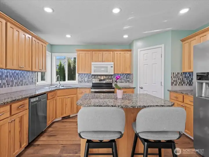 This gem of the neighborhood checks all the boxes! Immaculately maintained inside and out, this home sits on a large corner lot and offers flexible living spaces, including a dedicated office. Features include stainless steel appliances (except microwave. All appliances and washer/dryer stay), Shiplap, LVP waterproof flooring, a whole-home water softening system, and new upstairs windows with e-glass to reduce glare and noise. Lighting throughout the home has been upgraded with built-in nightlight functionality. Outside, you’ll find a newer roof (2024), newer fence (2025), a true dog run, sprinkler system, and small RV parking. The neighborhood offers trails, a park, and a duck pond. NO HOA! With Lewisville Park just a short distance away, along with Battle Ground’s charm, you’ve found the perfect place to call home!