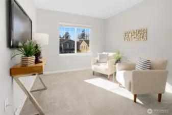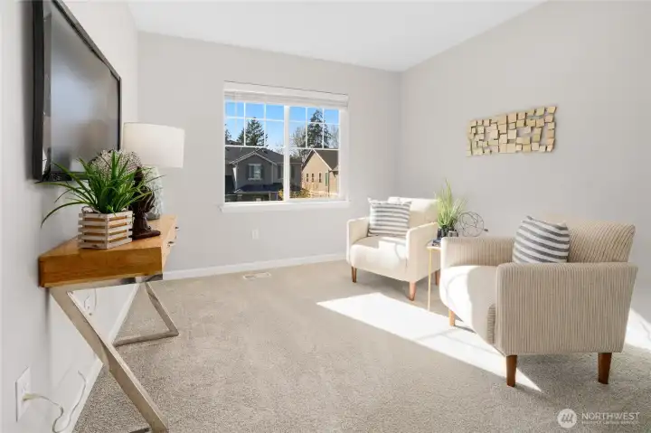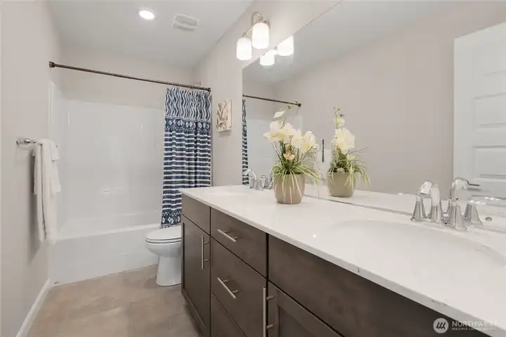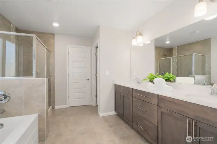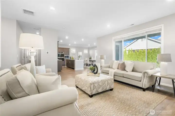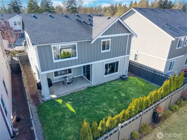 Better than new in Ten Trails is the popular Clark plan in the West Village where style meets functionality in a home that truly lives better than new. Main level features a spacious flex room perfect for home office/homeschool/playroom or guest quarters. The open-concept living creates a seamless flow ideal for everyday living & entertaining. Great room w/ gas fireplace opens to the Kitchen with beautiful white marbled quartz counters & island, SS gas range, double ovens, microwave, dishwasher. Upstairs is the primary suite w/ ensuite bath featuring separate shower, soaking tub, double vanities & walk in closet. 3 additional bedrooms + loft. Step outside to the covered back patio perfect for year-round enjoyment. Fully fenced yard includes privacy trees & sprinkler system. This home is packed with upgrades including smart home WIFI switches, Ubiquiti access points for internet. Gas forced air heating & A/C controlled by Google Nest, tankless water heater. Living in Ten Trails is more than owning a beautiful home, it’s about lifestyle. Just a short walk to Civic Park & the coming soon Safeway & commercial amenities nearby w/ future food truck park & new elementary school approved & scheduled for completion next year. Why Wait for New Construction? With all the upgrades, landscaping, and thoughtful features already in place, this home offers the benefits of new construction without the wait. West Village HOA includes front yard & common area landscaping + fiber internet!