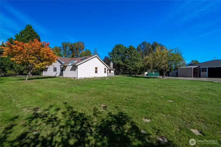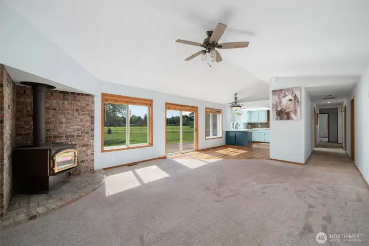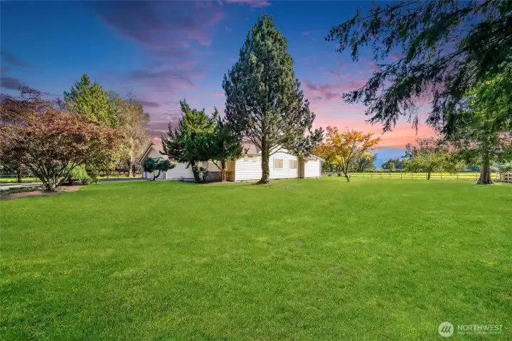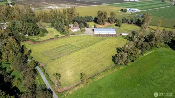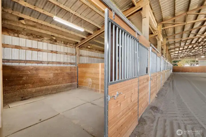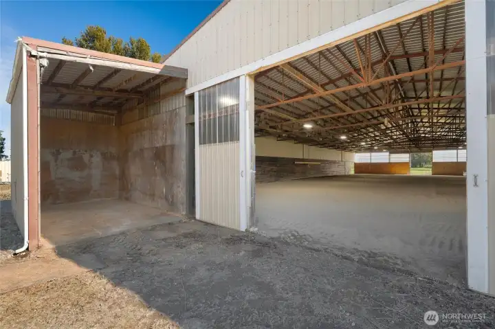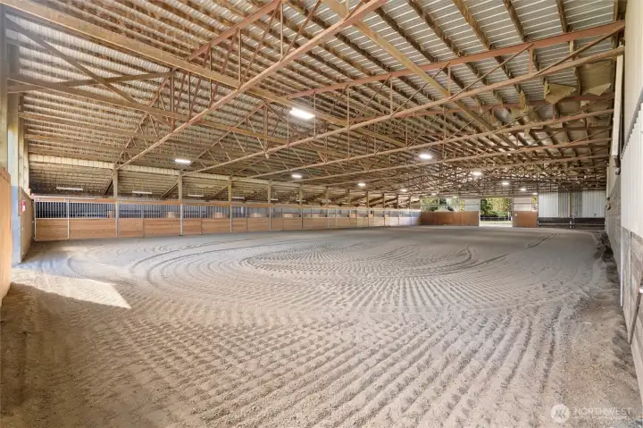 *No water intrusion into the house from recent flooding* Welcome to Eagle Creek Farms. This stunning gated 13.9-acre equestrian property is conveniently located just minutes from the U.S./Canada border. Designed with equestrian enthusiasts in mind, the property includes an impressive 120’ x 90’ indoor riding arena with 21 stalls (12 stalls with runs), a heated tack room, hay storage, covered shaving bin, and a heated indoor wash rack. A 4-stall loafing shed complements the fully fenced and cross-fenced acreage, complete with multiple pastures making this a turnkey training or boarding facility. This beautiful estate features a single-level, 3-bedroom, 2-bathroom rambler with a spacious 3-car garage. The private primary suite includes an updated en-suite bathroom and direct access to the patio, offering serene views of the barn and surrounding property. The updated kitchen boasts quartz countertops and stainless-steel appliances, seamlessly opening to the inviting living room, complete with a cozy wood-burning fireplace. Designed for both comfort and functionality, this home provides a peaceful retreat in a tranquil rural setting.