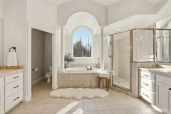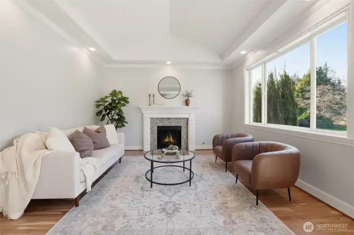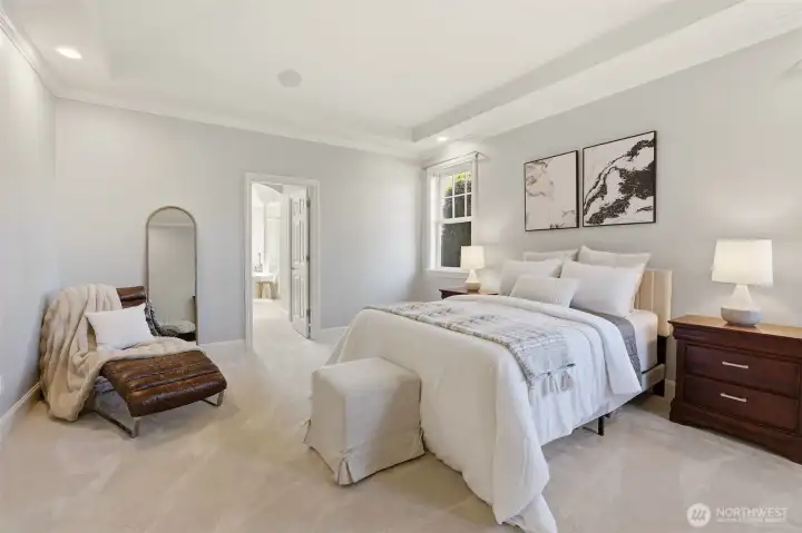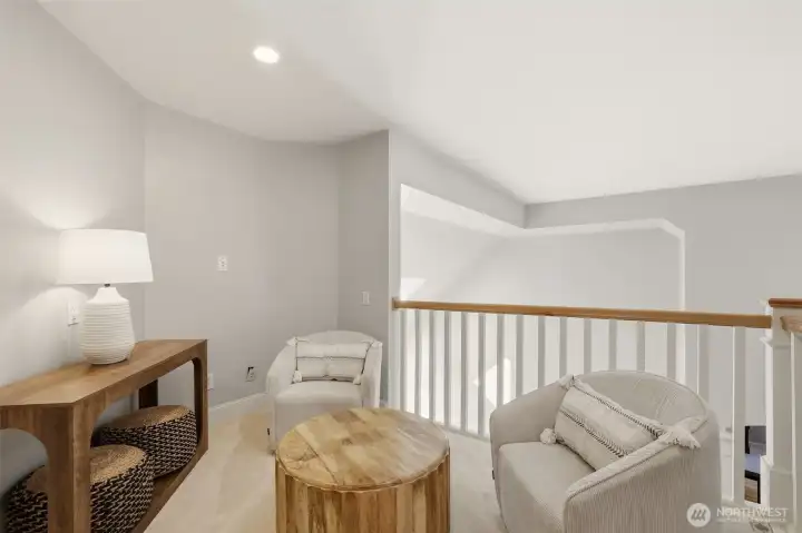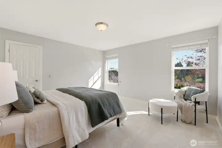 [Stately + Inviting Greenview Farms Stunner] An Enclave, known for its low turnover, pride of ownership and festive holiday spirit! Manicured grounds and quiet atmosphere welcome you into a home that offers a collection of standout features that are both rare and highly desirable! The main-floor primary suite provides convenience and comfort, complemented by a spa-like bath with double vanities, a large soaking tub, and warm late afternoon light, creating a luxurious retreat feel. Each generously sized bedroom features its own en-suite bath and walk-in closet, complete with a cozy upstairs loft perfect for intimate gatherings and game night. A stunning custom stone fireplace anchors the main living space, enhanced by vaulted ceilings and high-quality, extensive millwork creates a space you'll be proud to gather in. Updates Galore! Showcasing central A/C, newly refinished hardwood floors, refreshed kitchen and baths, new interior paint throughout, new carpet, and a new hot water heater make this home truly turn-key and timeless. Hosting is seamless with an expansive patio that opens to a level backyard for outdoor fun, another rare and exceptional feature! Tucked against a peaceful nature setting with a fenced garden, berries, grapes, and apple trees! Let this friendly community, the Sun-drenched spaces, the sounds of songbirds, privacy, and walkable streets set the tone for a truly purposeful lifestyle and love for where you live!