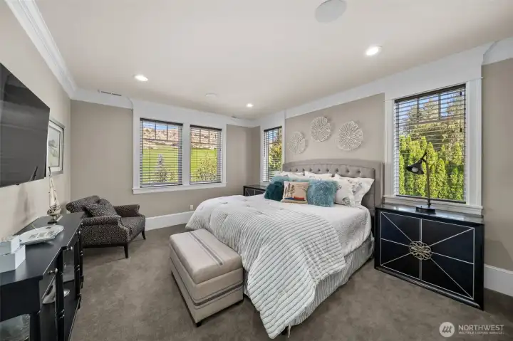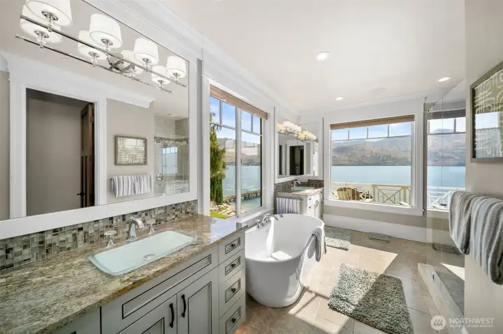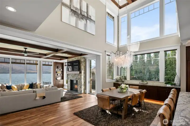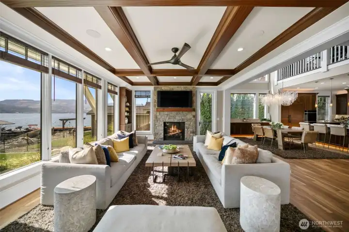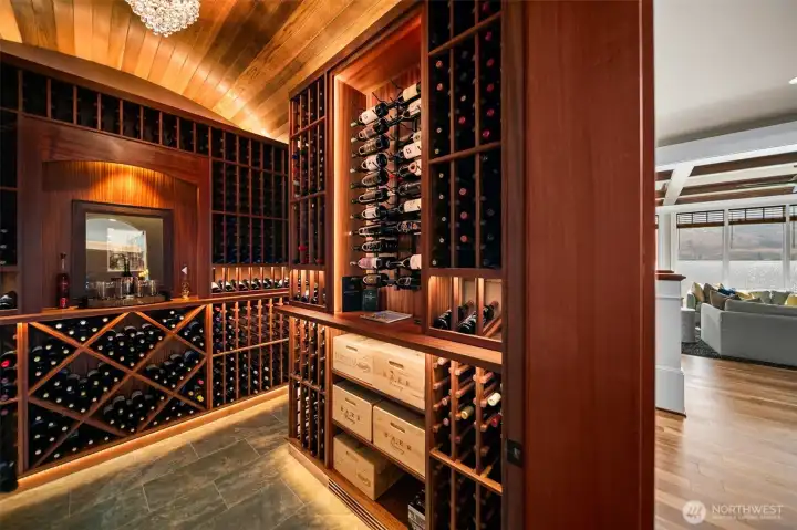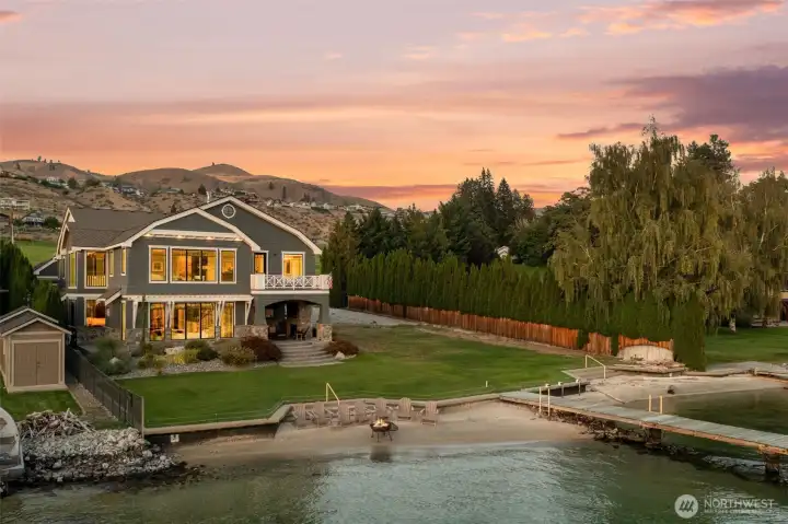 Exceptional modern luxury meets timeless lakefront living at 58 Key Bay Lane on the sunny North Shore of Lake Chelan! Perfectly positioned in the heart of Key Bay’s coveted sandy beaches, this flat waterfront property offers an unmatched blend of comfort & design. A stunning waterfall entry welcomes you into this 5-year-young custom 5 bed, 6 bath home, thoughtfully crafted w/ uncompromising quality throughout. The beautifully furnished interior showcases exquisite Shiro Noda lighting, rich Sepele custom cabinetry, & 8’ doors. A Savant smart home system controls lighting, audio, TVs, & security w/ ease. The chef’s kitchen is a showpiece w/ Wolf double oven, gas range, SubZero refrigeration, & double Cove dishwashers, complemented by a 1,200-bottle temp-controlled wine cellar. The elegant primary suite features breathtaking lake views, a gas fireplace, private balcony, custom built-ins, dual closets, & a spa-inspired bath w/ heated floors & a six-head shower. All oversized bedrooms are ensuite, including a media room w/ 85” TV & surround sound. LaCantina doors open wide to a covered patio w/ cedar ceiling, built-in BBQ, fireplace, TV, & exterior bath—perfect for seamless indoor-outdoor living. Enjoy a level lawn, low-maintenance landscaping, & direct access to your walk-in sandy beach. Shared dock w/ boat lift included. Complete with a 3-car heated garage & a separate climate-controlled garage, & fully furnished top to bottom, this turnkey retreat defines luxury lake living.
