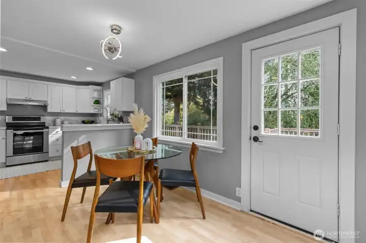 Located just minutes from Downtown Bellevue and Bellevue High School, this inviting home offers great versatility, move in, rent out, or redevelop. The property features 3 bedrooms and 2 full bathrooms, all in great condition. The bright living area flows into a generous deck, perfect for relaxing or entertaining, with views of the private backyard. Downstairs, you'll find a flexible bonus room with a study nook, adjacent to the spacious primary suite with its own full bath. Situated in the desirable Bellevue School District. This home is a true gem!