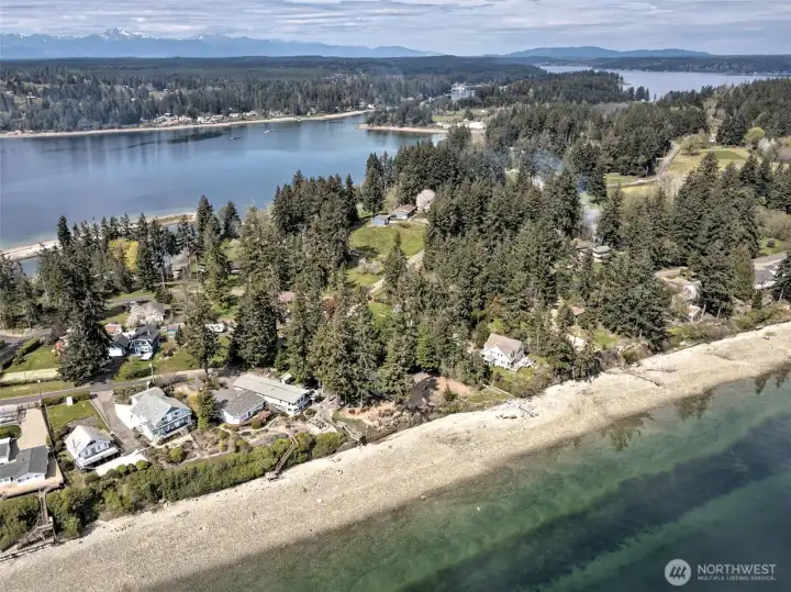 Arial view of the overview of the beach and Stretch Island