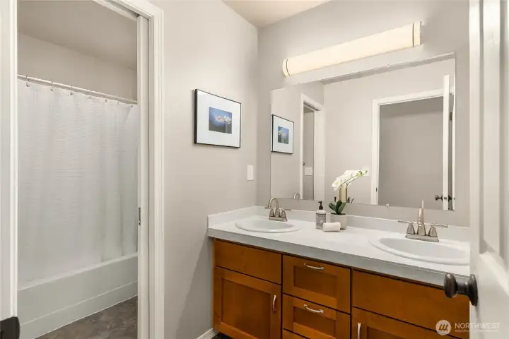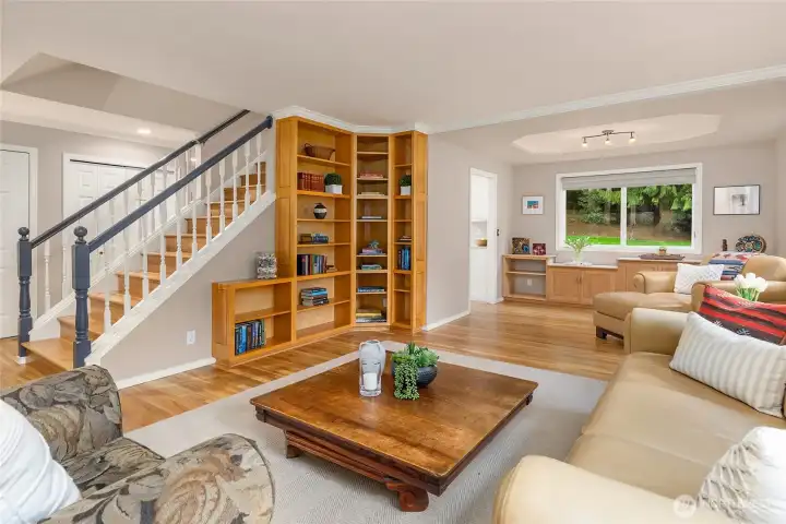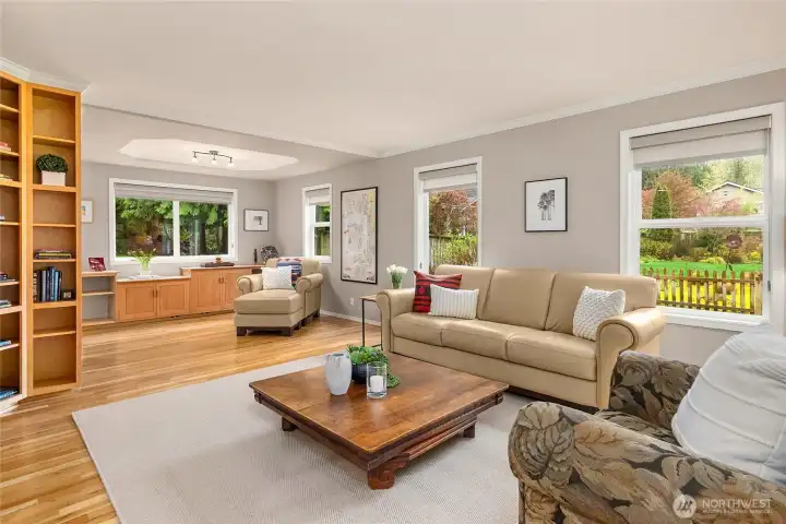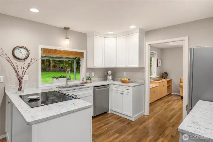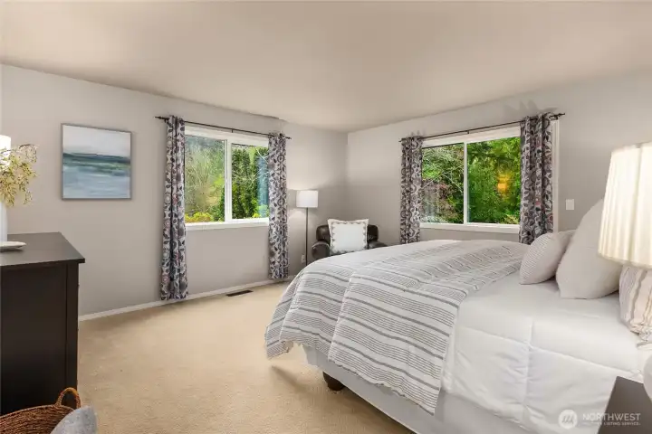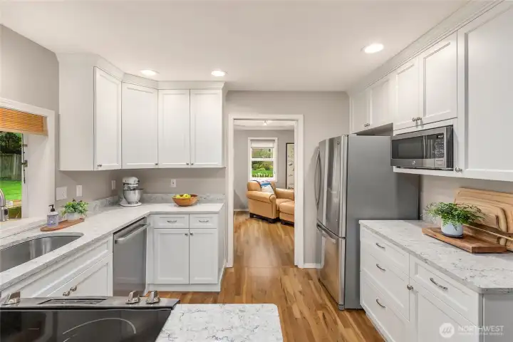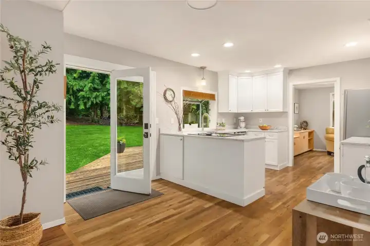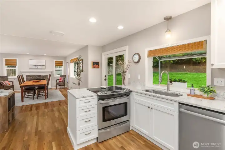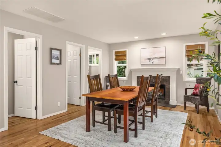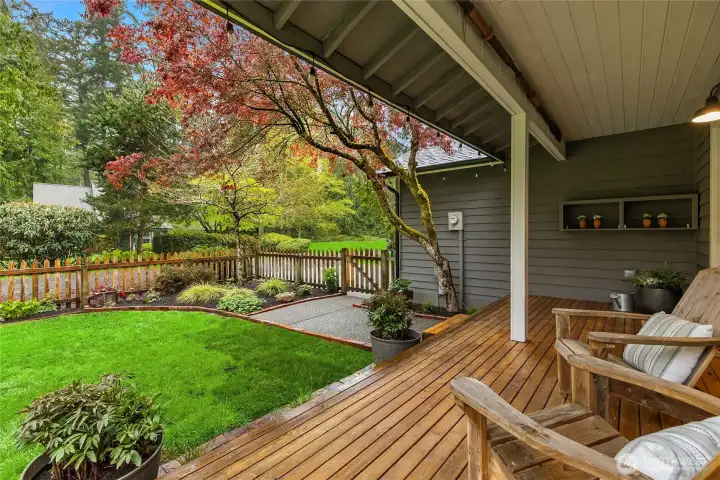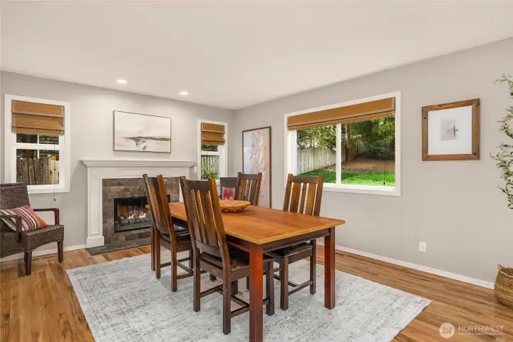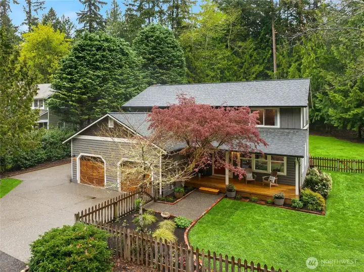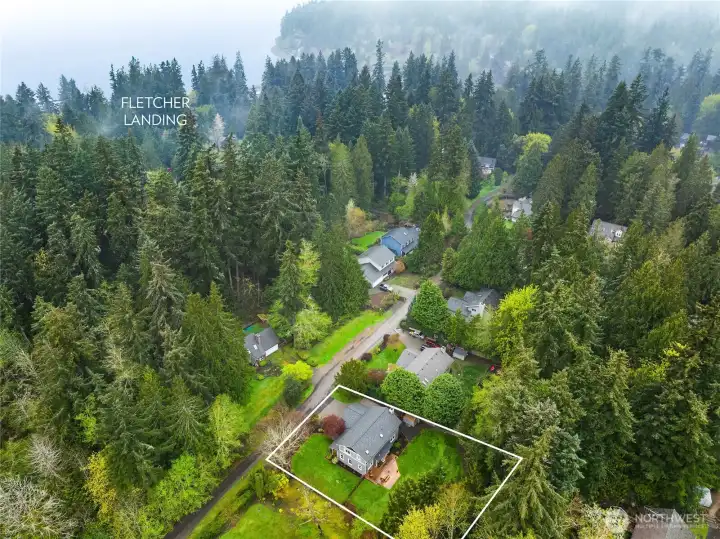 This charming home sits on a beautiful sunny lot in the popular Fletcher Bay neighborhood. Impeccably maintained and updated throughout, the welcoming covered porch invites you in. With three bedrooms upstairs, including a spacious primary suite, and a flexible den with a closet. The main level features an open living room with custom built-ins and a dining room with a fireplace. Step out of the kitchen, with new cabinets and countertops, to the open deck to enjoy gardening, games or lounging in the flat, private yard. Just a short stroll to the Fletcher Landing road end to launch a kayak or explore the trails of nearby Gazzam Lake. Take in a country feel while still being convenient to schools, shopping and the ferry to Seattle.