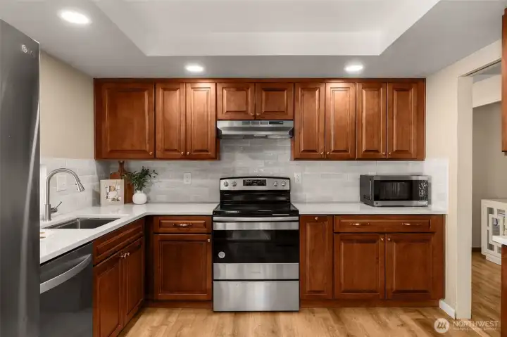 Beautifully updated townhouse tucked in a quiet location at the back of the complex. This light-filled home features fresh interior paint, a newer kitchen, and updated flooring throughout. Functional floor plan with 3 bedrooms upstairs, including a spacious primary suite, plus a large lower-level space that can be a 4th bedroom, office, or multi-purpose room. Enjoy the private back patio—perfect for relaxing or entertaining. PRE-INSPECTION and resale certificate available. Plenty of parking. Prime Bellevue location with easy access to highways, shopping, parks, and everyday amenities. Located in the highly sought-after Bellevue School District. Turn-key and move-in ready!
