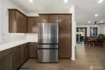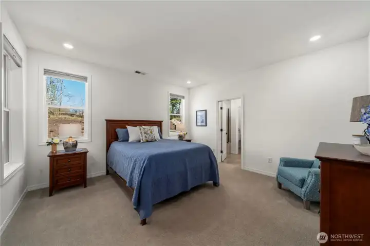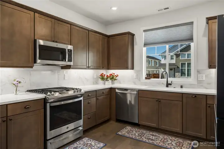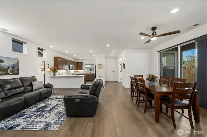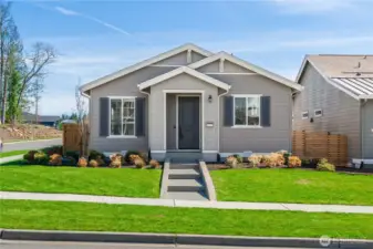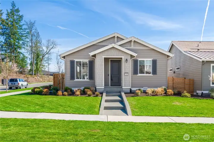 Resort 55+ living at Trilogy at Tehaleh! This better-than-new residence is ideally positioned on a premium corner lot with serene views of a protected natural preserve. Showcasing over $100,000 in Shea & owner upgrades, this home is a masterclass in 'Classic Chic' design. Beautiful, engineered hardwood flooring flows seamlessly throughout. The stunning kitchen features premium quartz counters, full-height backsplash, soft-close cabinetry, crown molding, & under-lighting. High-performance GE appliances are anchored by a Samsung Smart Refrigerator with Beverage Center, with the seating bar providing a natural social hub. The open-concept design offers a spacious great room and dining area. In addition to a convenient powder room, the primary suite is a true retreat with a private entrance to a spa-inspired ensuite featuring quartz counters, double sinks, a frameless glass shower & designer tile. The laundry/mudroom includes a Samsung washer & dryer with smart storage. And let’s not forget the versatile second bedroom/den with French doors, perfect for a guest suite or home office. Step outside to your private oasis & enjoy a glimpse of Mt. Rainier & the beautiful outdoors from your composite deck, featuring river rock beds, a paver sidewalk, & a soothing water fountain. With HOA-maintained yard care doing the heavy lifting, you’re free to relax and enjoy the 40 miles of trails, parks, & your private Seven Summits Club—the ultimate lock-and-leave luxury lifestyle.