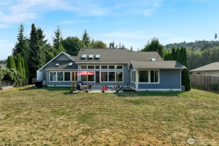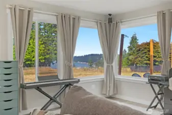 Tucked in the quiet coastal community of Utsalady Heights on Camano Island, this beautifully remodeled rambler offers the perfect blend of comfort, light, and scenery. Enjoy stunning views of Mt. Baker and Utsalady Bay from this light-filled home, where skylights and a wall of windows along the back bring the outdoors in.Set on a fully fenced, level lot, the open-concept layout features a thoughtfully redesigned kitchen (2020) with new cabinets, quartz counters, stainless steel appliances, and LED lighting, plus refinished hardwoods and new flooring throughout. Recent upgrades include a new furnace & heat pump (YES A/C), interior/exterior paint, garage doors, electrical panel, and standby generator.Offering 3 bedrooms, 1.75 baths, an office, and a flexible bonus room/4th bedroom, plus a 300 sq ft attached ADU (2023), there’s space for everyone. The spacious primary bedroom includes two separate closets, a 4-piece on-suite featuring granite countertops, water closet, beautiful tile shower with a skylight providing natural light. The 3-car garage includes built-in shelving and a workspace, and there’s abundant attic storage. Start your day on the back patio with peaceful mornings, birdsong, and fresh coastal air.Located on the north end of the island, just minutes to Utsalady Point Beach, with a paved walking trail across the street, nearby hiking trails, two state parks, and a grocery store and restaurants all within 10 minutes.