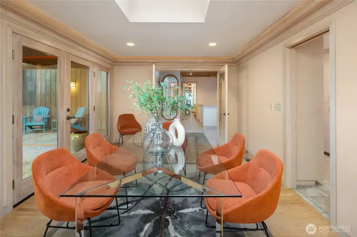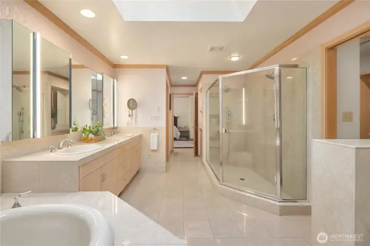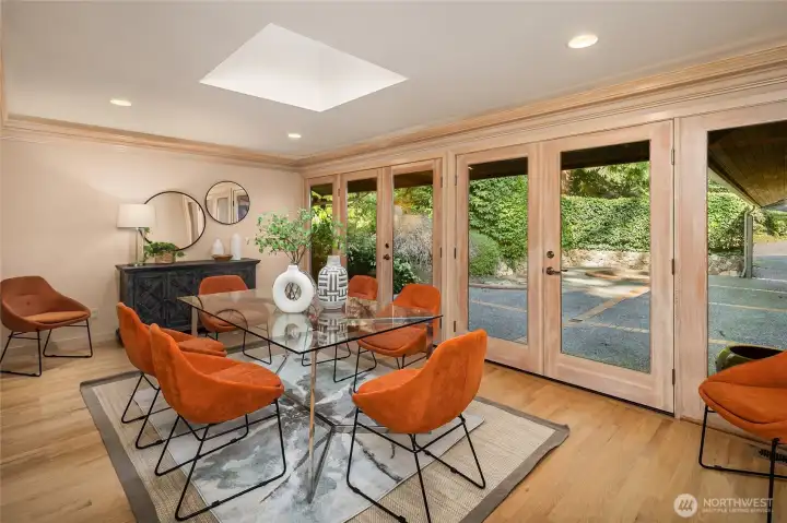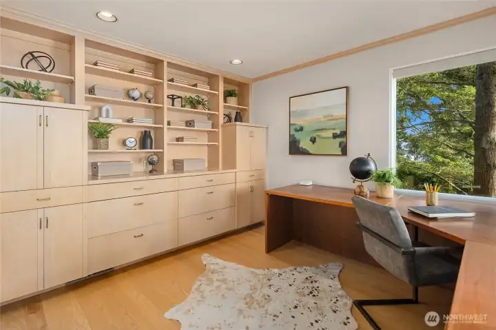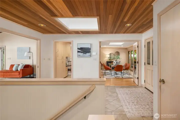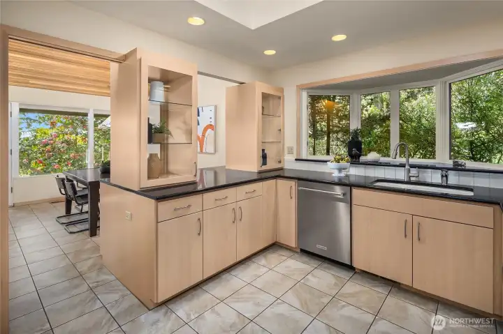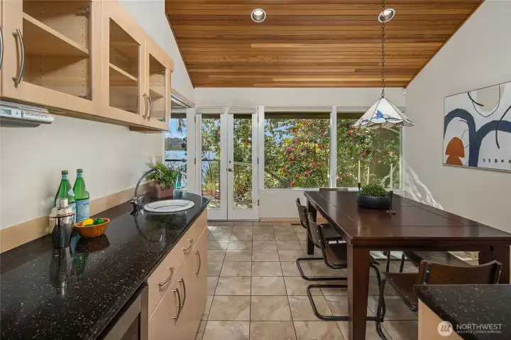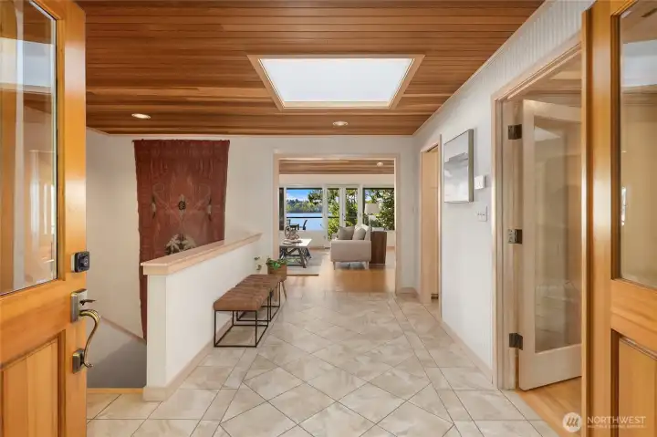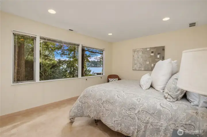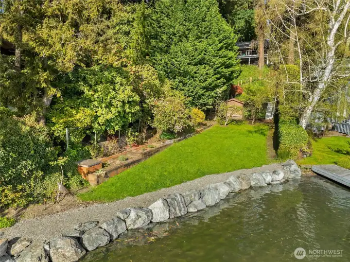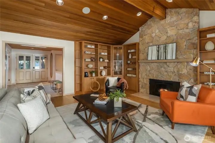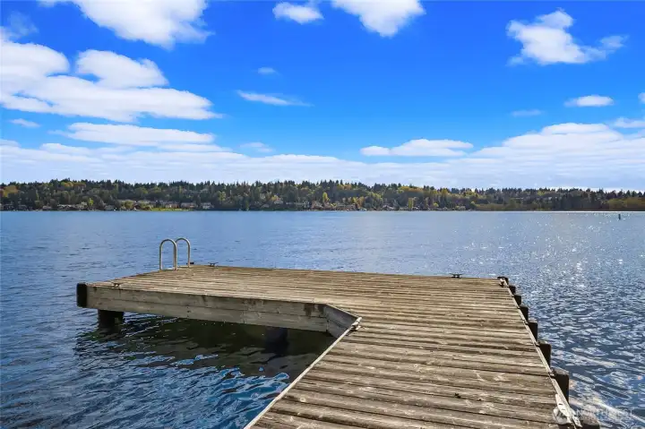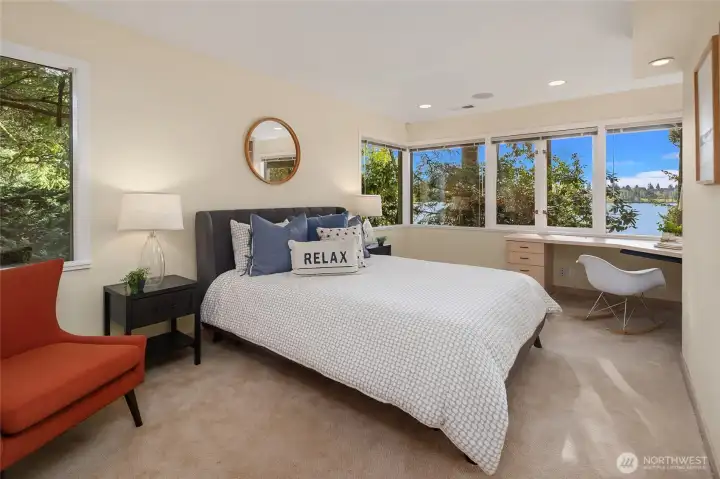 A true mid-century waterfront retreat with classic clean lines and timeless design in the heart of Enatai. Warm modern aesthetic accented throughout with vaulted cedar plank ceilings and walls of glass. Architecturally striking features include a dramatic stone fireplace and natural textures. Panoramic outlooks of the Olympic Mountains and the calm waters of Lake Washington from Mercer Island to North Seattle. The sunsets will take your breath away! This rare street-to-water lot offers 50 feet of sunny, low-bank waterfront, a grassy lawn dotted with three fruit trees, and a private dock with deep-water moorage. An opportunity to own a piece of Northwest modern design on the water’s edge.
