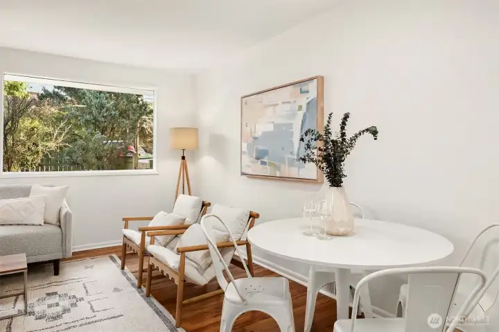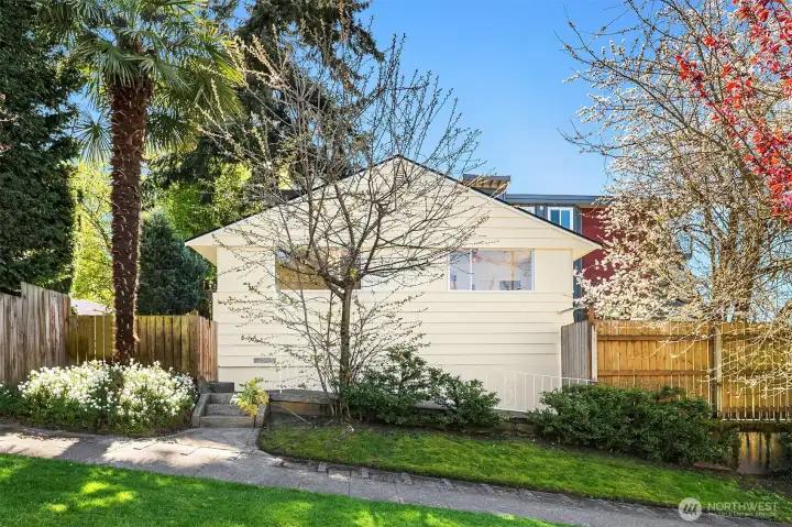 Welcome to your Urban Oasis! Charming 1953 single-story home with 2 bedrooms and 1 bath located on the west side of Queen Anne. This level-entry, light-filled residence has been recently updated with new interior and exterior paint, a newer roof, and modernized electrical and plumbing systems. Set back from the street for privacy, with a fully fenced front yard, this home features hardwood floors, a wood-burning fireplace, a gas furnace, and updated lighting. The backyard patio is ideal for outdoor dining and summer gatherings and is also fully fenced. This attractive condo alternative includes an attached one-car garage and additional off-street parking. Experience comfortable city living in this inviting home. Close to downtown, Ballard, Phinney, Magnolia, and all that Queen Anne has to offer.