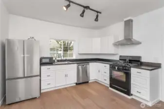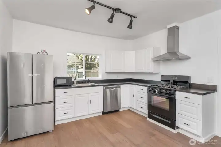 Charming bungalow with picture-perfect porches in a prime central location—just minutes to downtown, local colleges, shopping outlets, and easy I-5 access. Set on a spacious 15,000 sq ft lot, this property offers the best of both worlds: close-to-town convenience with room to spread out. The expansive yard provides endless possibilities—space for pets, play, entertaining, RV parking, and even potential for an ADU or future expansion. Thoughtfully remodeled in 2023, including a recent roof, updated flooring, and fresh interior and exterior paint, this home is move-in ready while leaving room to add your own personal style. Recent double-pane windows bring in abundant natural light, enhancing the bright and inviting feel. The open floor plan offers flexibility with a large living area that can function as a family room or living/dining combination. The kitchen features butcher block countertops and updated cabinetry, with ample space to add an island or casual dining area. A detached two-car garage/shop with electricity adds even more versatility—ideal for parking, storage, hobbies, or workspace needs.