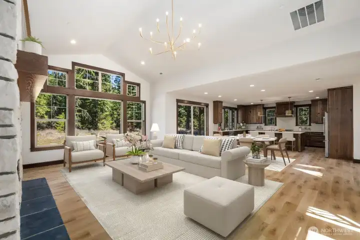 Step inside 250 Wanawish Lp and experience refined Cascade Mountain living. This brand-new 2026 custom home in prestigious Suncadia Resort sits on a private 0.45-acre forested lot with no neighbors behind, offering seclusion & serenity. Soaring vaulted ceilings & expansive windows fill the great room with natural light and evergreen views. A full-height stacked-stone fireplace with linear gas insert, arched alcove, &and custom built-ins anchors the space, while a custom staircase with geometric iron railing adds architectural interest. The gourmet kitchen blends warmth & function with knotty-wood cabinetry, oversized island, Thermador appliances, window-wrapped sink, hidden outlets, & butler’s pantry. The main-floor primary suite offers vaulted ceilings & tranquil forest views. The spa-inspired ensuite includes heated floors, soaking tub, glass shower, dual vanity, & elegant lighting. Additional features include a heated mudroom with built-ins, flexible office or bedroom, & an upper-level bonus room ideal for media, games, or guests. Dual-zone HVAC provides year-round comfort. The covered patio with exposed beams is pre-wired for a hot tub & includes a gas grill connection — perfect for outdoor living. The 3-car garage offers EV charging, hot/cold water, & extra storage. Located just 90 minutes from Seattle in Suncadia Resort, enjoy access to golf, trails, spa, and year-round recreation. A rare mountain retreat designed for every season. Schedule your today!