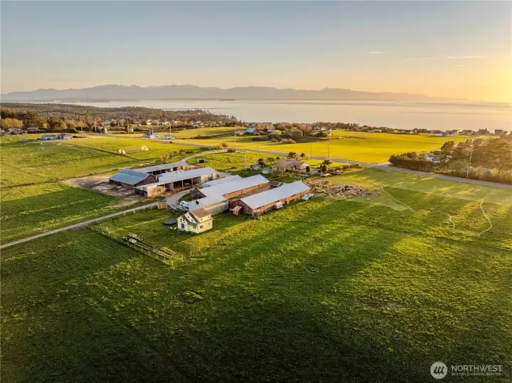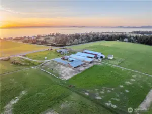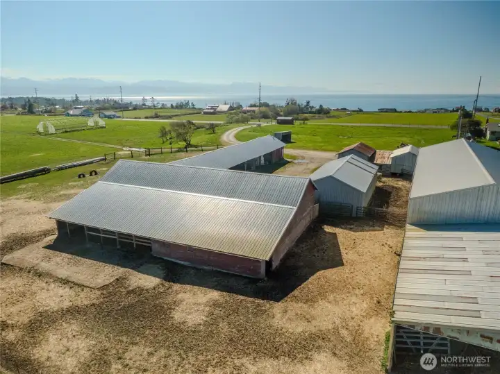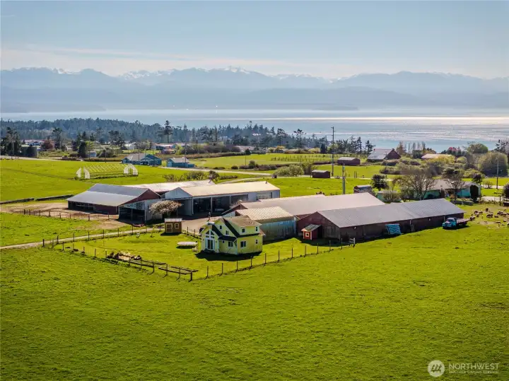 This incredible farm offers 84 acres on 4 parcels with exceptional features. The Bells Farm has been operating for over 75 years with a reputation for high quality soils, world class produce, incredible panoramic views, irrigated pastures, and a legacy respected by customers for decades. The farm offers a custom 1,176 sq.ft. 2 bed/2 bath home built in 2020. Over 27,000 sq.ft. of barns, sheds, workshops, and storage space. Conservation Easement on the property through Whidbey Land Trust offering 17 acres for new commercial operations. This is an ideal location for a Farm to Table Business, Wedding and Event Center, Restaurant, Home Based Business, Equestrian Facility, or another unique idea you may have. Large pond is on site for attracting wide variety of water fowl and other game animals. Great spot to recreate or hunt. Stunning views of the Puget Sound, and Olympic Mountains with the most incredible sunrise and sunsets you could hope for. Check this farm out before its gone!