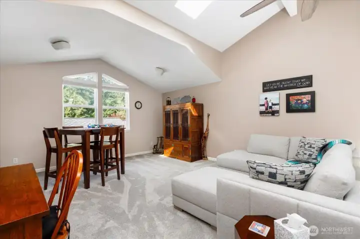 Nestled within the highly sought-after Useless Bay Golf & Country Club, this beautifully updated condo offers effortless, move-in ready living in a serene island setting. Since 2018, the seller has thoughtfully enhanced nearly every aspect of the home, including new decks, laminate hardwood flooring, trim, carpet, and a new furnace (2023). The kitchen has been refreshed with a new cooktop (2018), countertops, sink (2024), dishwasher (2022), and refrigerator (2023), while the remodeled primary bathroom adds a touch of everyday luxury. Additional updates include a new dryer (2020), full interior paint, and a charming window seat in the primary suite. The exterior has also been meticulously maintained, with fresh paint completed in June 2024 and a brand-new roof and skylights being installed in April 2026, offering peace of mind for years to come. The main level features a spacious primary suite with a beautifully updated bath, a second bedroom, and a full guest bathroom. The kitchen flows seamlessly into the open living area, where large windows and a sliding glass door invite in natural light and lead to a private back deck, perfect for relaxing or entertaining. Upstairs, you’ll find an additional bedroom with en-suite bath, abundant storage, and a versatile loft space ideal for a home office, media room, or cozy gathering area. Surrounded by lush, well-maintained landscaping, this condo offers the perfect blend of comfort, style, and easy island living.
