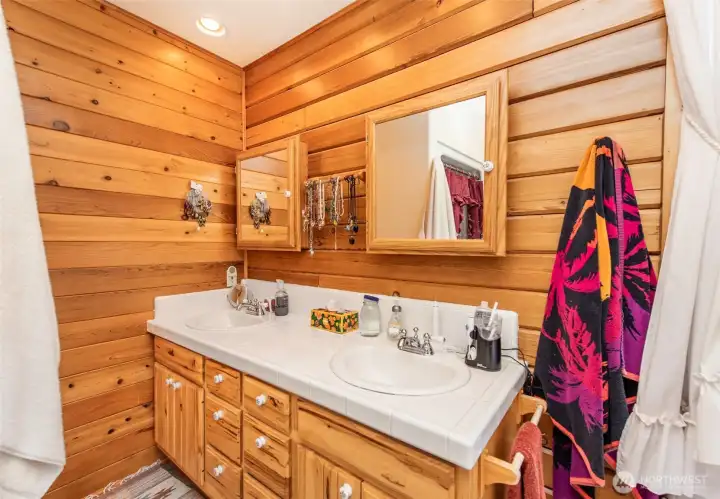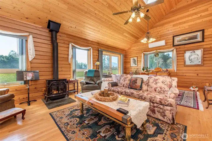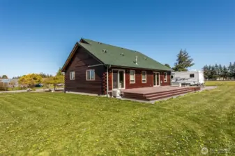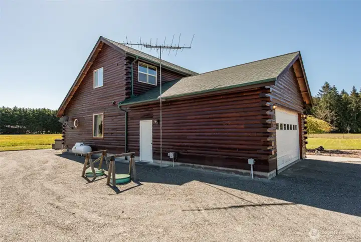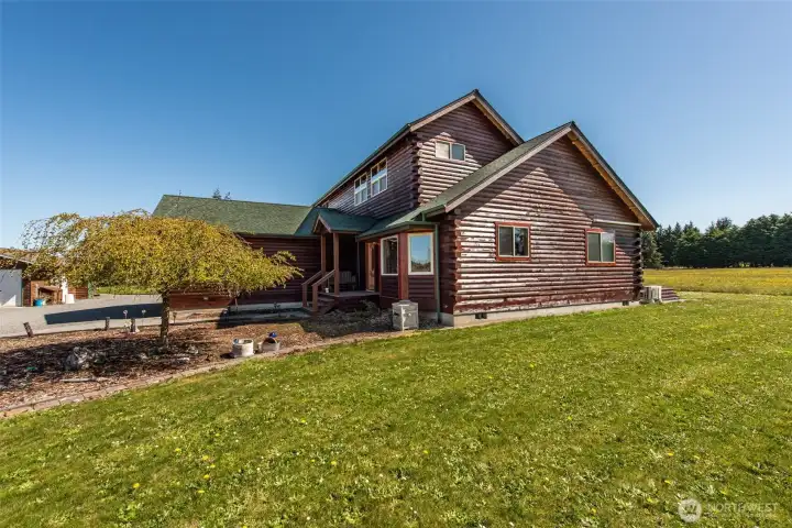 Beautifully maintained one-owner residence on 1.25 acres, showcasing mountain views and the natural beauty of the Olympic Mountain Range. Freshly stained and treated Yada log siding with a new roof! This 3-bedroom, 2.5-bath home offers 1,822 sq ft of refined living space with a thoughtful, functional layout designed for comfort and livability. Rich red oak hardwood floors and tile run throughout, enhanced by abundant natural light from three solar tubes and southern exposure. The inviting living space features a propane fireplace and ductless heat pump, providing efficient year-round comfort. The primary suite serves as a retreat, complete with a soaking tub, double vanity, walk-in shower, spacious walk-in closet and built-in bookshelves. Outdoor living is elevated with a newer hot tub and expanded Trex deck—ideal for relaxing or entertaining while taking in the serene surroundings and fresh Olympic Peninsula air. Attached 2-car garage plus a detached garage and two storage sheds offers exceptional space for hobbies, equipment and flexibility. Plenty of room for RV/boat parking. A rare opportunity to enjoy privacy, comfort, and Northwest living in a well-cared-for home surrounded by the natural beauty and recreational lifestyle of the Olympic Peninsula.