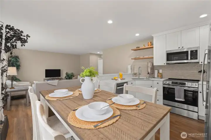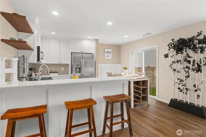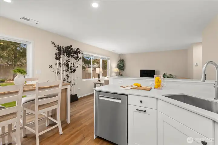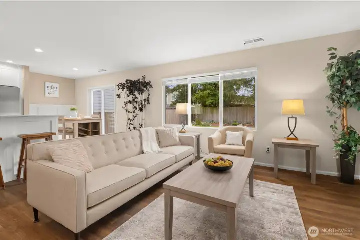 Welcome to this beautifully updated home in the quiet and desirable Woodridge neighborhood of Maple Valley. This well-maintained property truly checks all the boxes, starting with its spectacular curb appeal and meticulously manicured yard. Inside, you’ll find a remodeled kitchen with new appliances, fresh interior paint, new engineered hardwood flooring, and newer carpet—making this home truly move-in ready. The bright and functional layout is enhanced by vaulted ceilings, creating an open feel with abundant natural light throughout. The primary bedroom features a beautiful view of Mt. Rainier, adding a special touch to everyday living. Step outside to a generously sized backyard, perfect for relaxing or entertaining. Let's not forget to mention the amazing epoxy garage floor that shows the care this property has received! Located on a peaceful street with convenient access to schools, shopping, restaurants, trails, and more, this home offers the perfect balance of comfort and convenience. A true must-see in like-new condition!