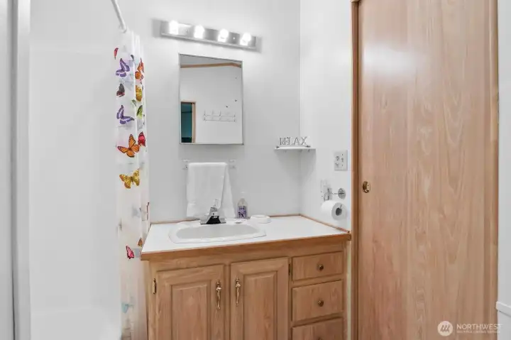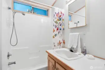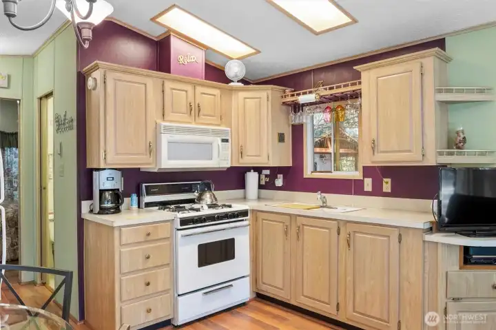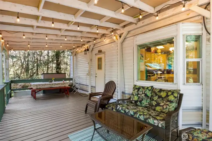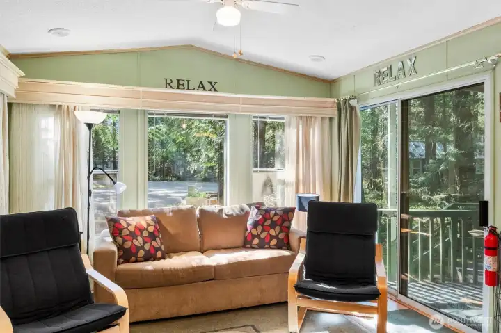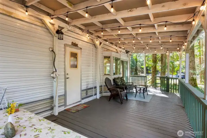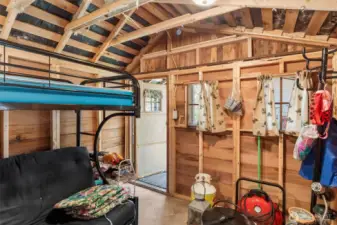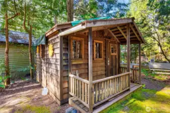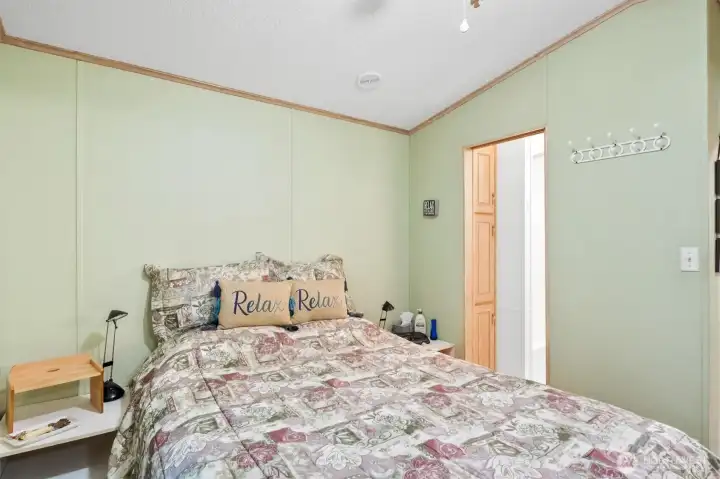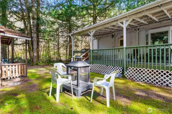 Head to the quiet end of the Glen in Division 5 to view this well-maintained park model featuring vaulted ceilings, a spacious bedroom with lots of storage, a queen sofa bed, and a true full-size bathroom. Located in a cul-de-sac and backing up to green space, this lot offers plenty of privacy. Outdoors you'll find a full-length covered deck with a picnic table and furniture for relaxing and entertaining. In the evenings enjoy sitting around the fire pit for that cozy evening chatter. A supply of wood is provided too! A cedar shed with bunk beds provides extra sleeping room and storage. Upgrades include a new standpipe and laminate flooring. Recent maintenance has been done on the furnace and septic. The pool, book nook, laundry, and playground are all a short walk away. Come take a look at this well-kept property. You won't be disappointed!