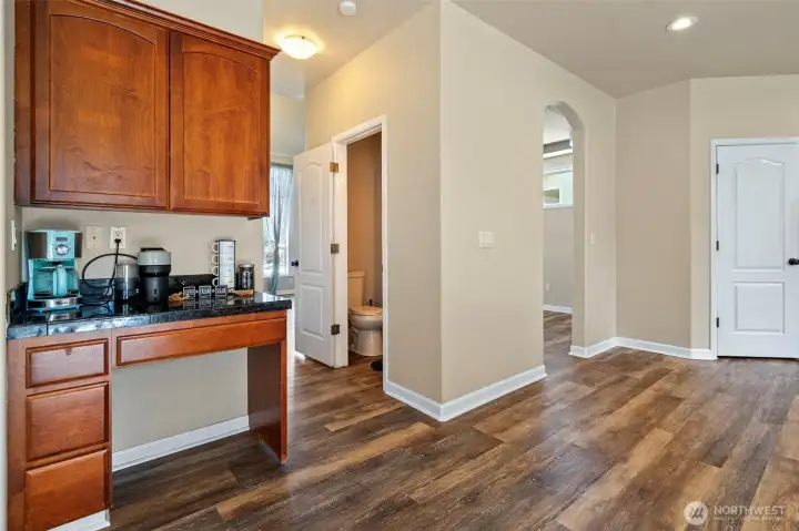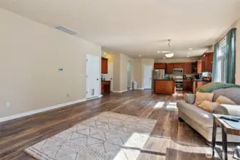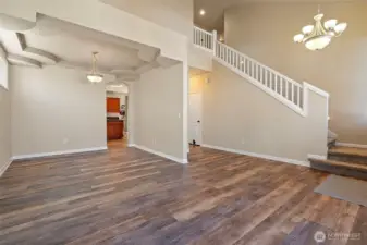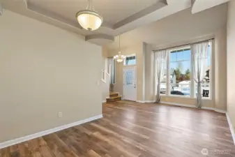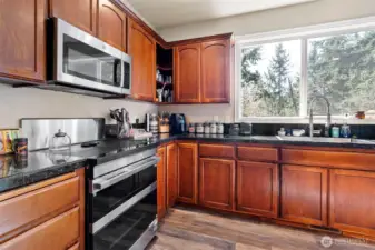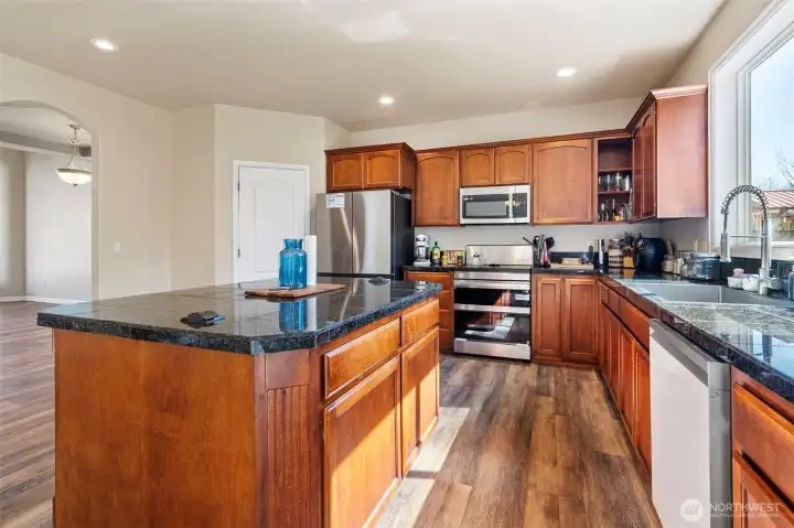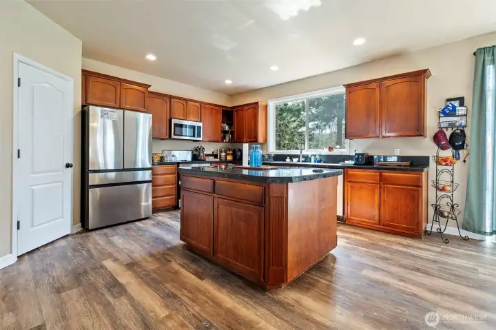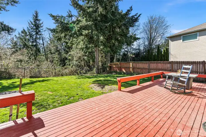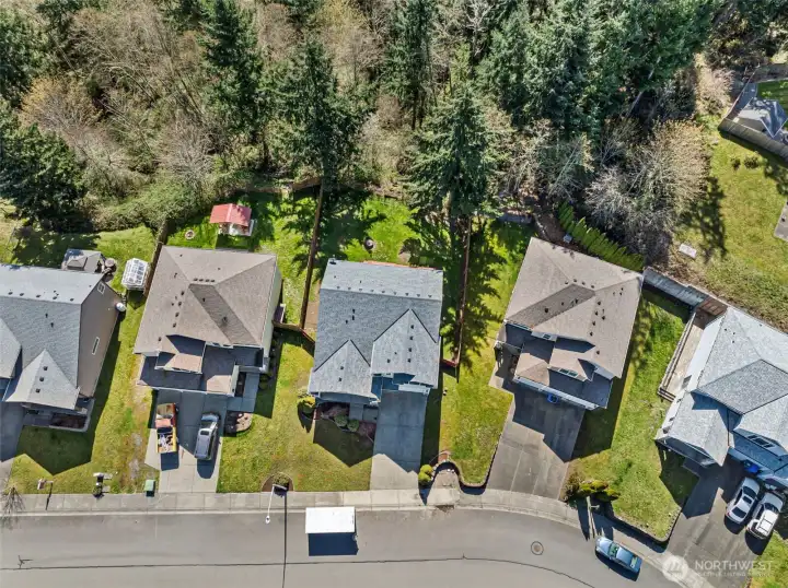 Tucked away on a quiet dead-end street and backing to a natural greenbelt, this 4-bedroom, 2.5-bath Eatonville home offers a private setting with a layout designed for everyday living. The main level features an oversized kitchen with a large island, now complemented by brand new appliances, and opens seamlessly to the dining and living areas—creating a natural flow ideal for both entertaining and daily use. A comfortable living space with a fireplace adds warmth and character to the heart of the home, while the welcoming entry with vaulted ceilings enhances the sense of space. Upstairs, you’ll find all four bedrooms, including a spacious primary suite that includes a soaking tub, separate shower, and walk-in closet. A full second bath and a conveniently located laundry room complete the upper level. The fully fenced backyard backs to a peaceful greenbelt, offering a private outdoor setting to relax or entertain, with a deck that extends your living space into the natural surroundings. Additional features include a new 30 year roof, two-car attached garage and a location that blends quiet surroundings with convenient access to nearby amenities.