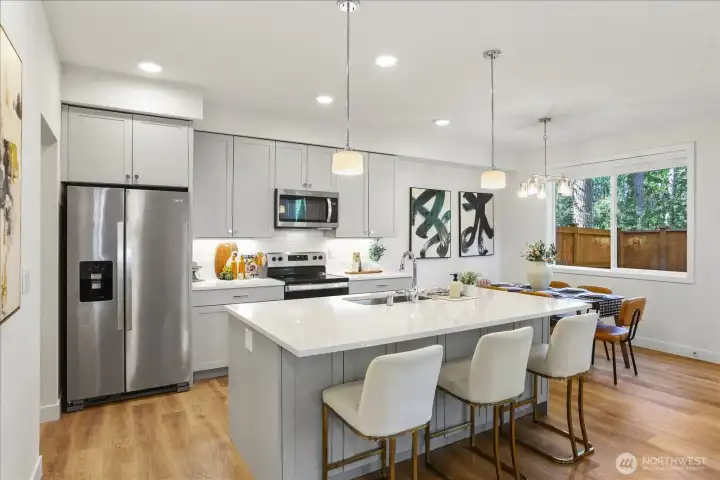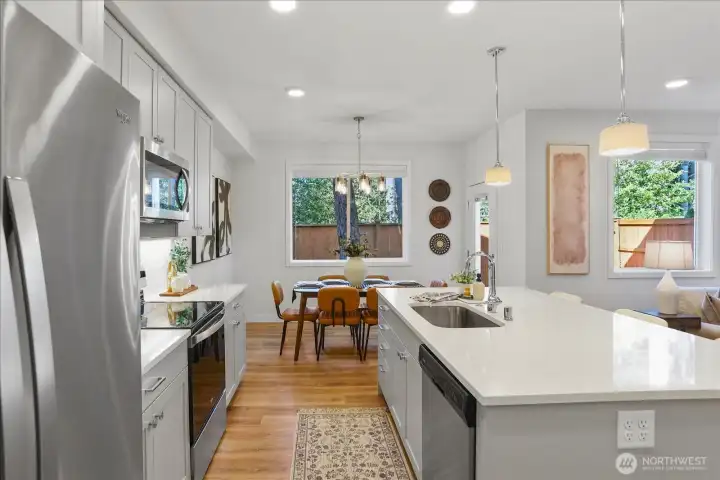 Like-new townhome in a prime location close to shopping, dining, and convenient commuting routes. This home offers 3 generously sized bedrooms and 2.25 bathrooms, designed for both comfort and functionality. The interior features elevated designer finishes, including solid slab quartz countertops, wood-wrapped painted millwork, heated floors in the primary bathroom for an added touch of luxury, and mini-split air conditioning for efficient year-round comfort. Enjoy a private, low-maintenance outdoor space with a brand-new turf backyard—no upkeep required. The attached garage includes an EV charger, adding modern convenience. This neighborhood is a collection of ten luxury townhomes, thoughtfully crafted by a respected local builder known for quality and attention to detail. A move-in-ready opportunity that combines style, comfort, and an ideal location.
