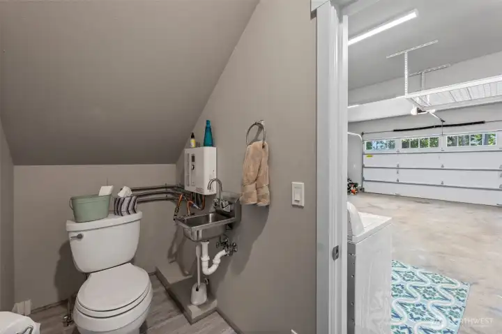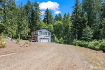 BARNDOMINIUM with huge potential on 2+ acres with 89 feet of waterfront! Live on the property while you build your dream home! Trim your trees for more view! Built in 2019 & move-in ready! The garage has ample room for cars, toys & shop space, plus laundry & 1/2 bath. Upstairs is a 1 bedroom apartment with the comforts of a heat pump, luxury vinyl plank flooring throughout, & a wall of windows facing the water providing great natural light. Kitchen has stainless steel appliances, subway tile backsplash & enviable walk-in pantry! Bedroom has adjoining full bath & walk-in closet. There are 2 additional carport areas outside. Plus property has 5 bedroom septic, RV hookup, and space for gardening or chickens, with no HOA! Best of all worlds!