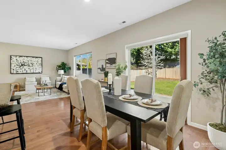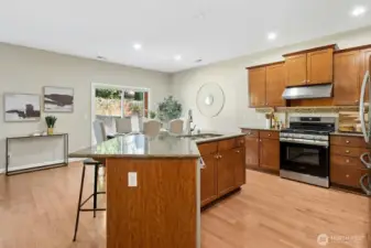 Rare oversized backyard sets this Kensington Park home apart—offering exceptional outdoor space w/ an extended patio, perfect for entertaining, relaxing, or play. Inside, enjoy hardwood floors throughout the lower level & a bright, open layout. The kitchen features SS appliances, granite slab countertops, gas cooktop, & pantry, flowing seamlessly into the dining & living areas anchored by a cozy gas fireplace—creating a warm, light-filled gathering space. Built by D.R. Horton, this thoughtfully designed home offers both comfort & functionality. Upstairs includes a spacious primary suite w/ walk-in closet, convenient upstairs laundry, plus 2 guest bedrooms & a full bath. A versatile media/office nook adds flexible space for work or hobbies. 2-car garage w/ vertical storage shelving completes the home. Freshly painted interior. Located in North Bothell, close to shopping, dining, schools, freeways, & Tambark Creek Park/playground.