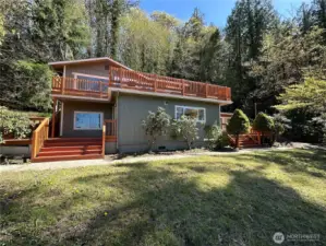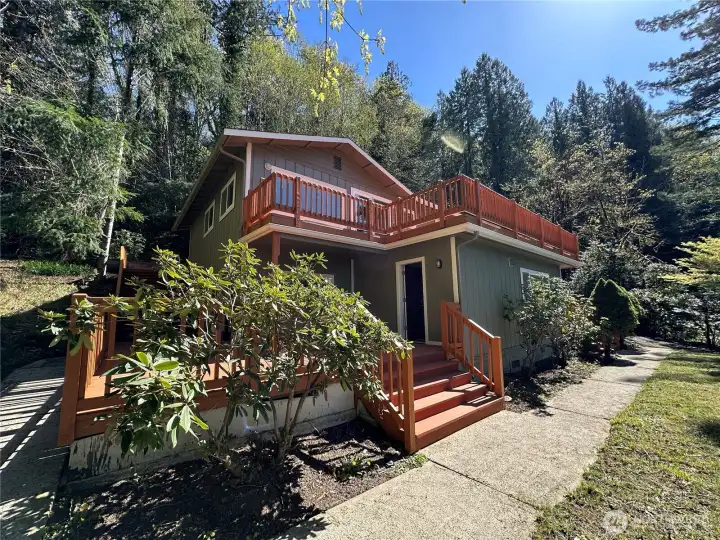 Beautifully remodeled 3-bedroom + office, 1.75-bath home set on 1.5 acres with sweeping views of Hood Canal and the Olympic Mountains from nearly every room. Perfectly situated along the scenic North Shore, this home combines peaceful waterfront views with convenient access to nearby amenities. Inside, the home features thoughtful updates and modern finishes throughout. A flexible office space is ideal for remote work or additional living needs, while the mud room adds practical functionality. The oversized primary suite occupies the entire second floor, creating a private retreat complete with an ensuite bathroom, walk-in closet, its own private deck, and stunning views from every window, even from the bathroom! Step outside to take in the stunning surroundings from four expansive decks, perfect for entertaining or simply relaxing while soaking in the views. The property also features a large driveway with ample parking, a spacious front yard, and a storage shed/outbuilding. Enjoy easy access to Belfair State Park, local marinas, hiking trails, and outdoor recreation, all just minutes away. Downtown Belfair is a short drive for shopping, dining, and essentials, while Highway 3 provides a straightforward commute to Bremerton, Silverdale, and surrounding areas. This is a rare opportunity to enjoy comfort, space, and unforgettable views in a prime Hood Canal location.