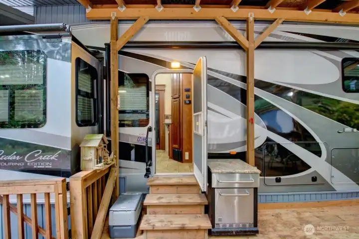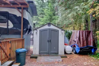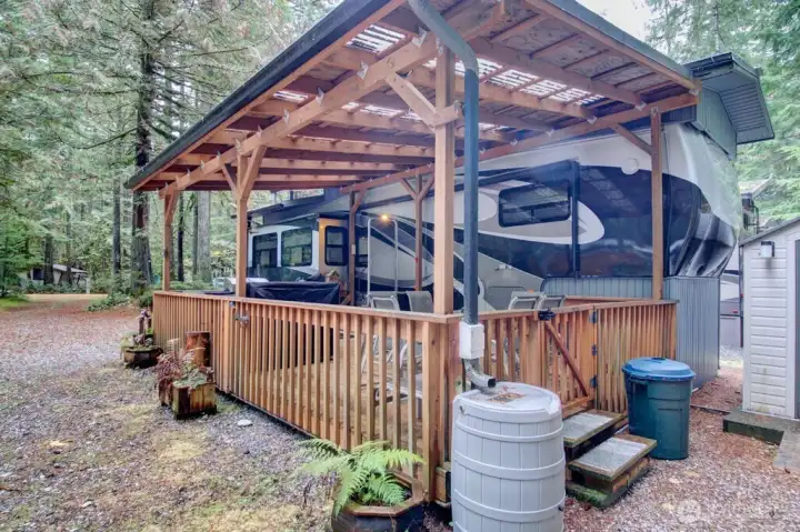 Like new 2011 40' Cedar Creek fifth wheel with a thoughtfully built auxiliary roof on an amazing quiet cul-de-sac dead end street in Div 6 with minimal traffic. Large 4,356 lot boasts and entertainer's dream deck with outdoor cooking space plumbed with propane. There is AC for the Summer and a generator for during the windy and stormy days so you can enjoy your new property throughout the year. 8x10 shed provides additional storage and room to work on projects. Lots of storage in the trailer with many access points. The Glen is zoned recreational for 120 days of use out of the year and has all the amenities you could want, including 2 pools, hot tub, pickleball, library, laundry mat, 2 clubhouse, 24 hr security, gated entry, & play areas.