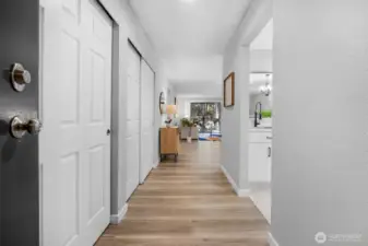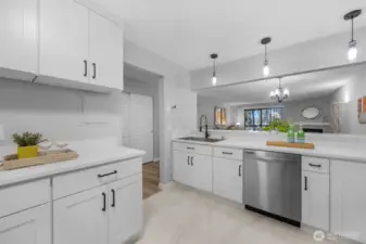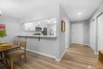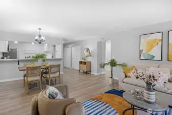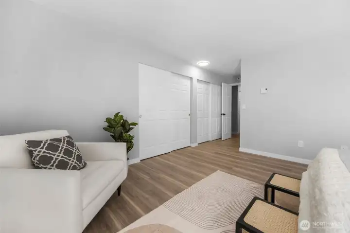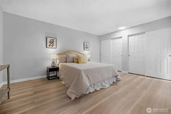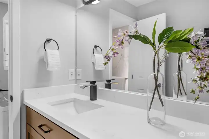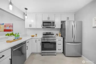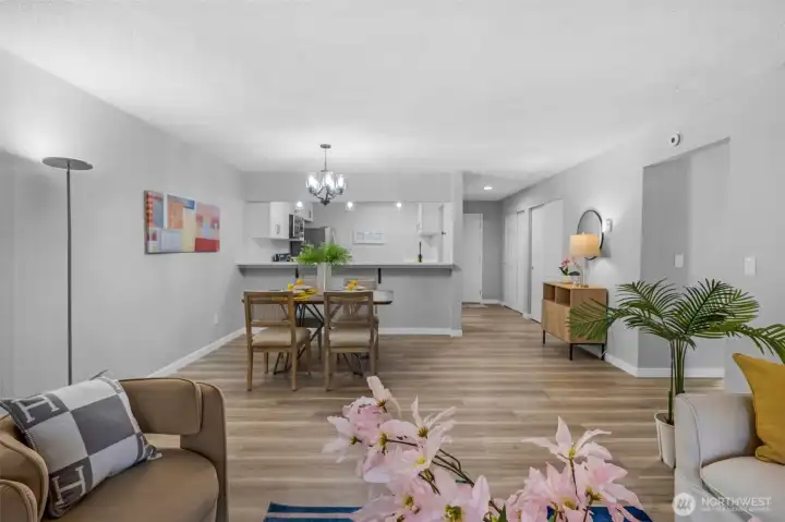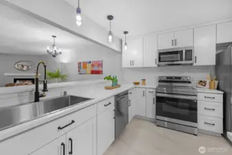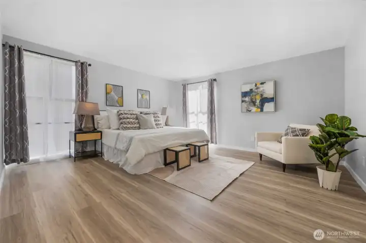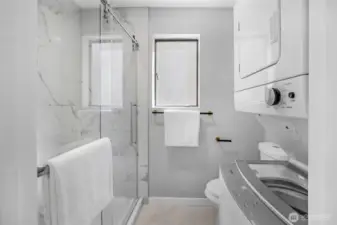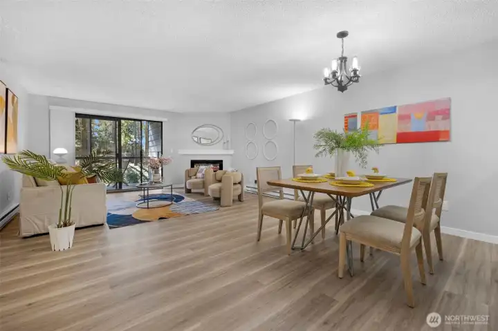 FULLY REMODELED | 1213 SQ FT I STAIR-FREE | 2-BEDROOM | 1.75-BATH I OPEN FLOOR PLAN condo at Sixty-01! Almost everything in this gorgeous condo is brand new! Freshly painted interior, luxury vinyl plank flooring, pristine stainless steel appliances, elegant quartz countertops with chic black lighting lighting and plumbing fixtures! Both bathrooms have dazzling new shower surrounds alongside beautiful new vanities! Convenient stack washer/dryer located in the Primary bathroom. Southeastern sunshine washes across the balcony and spills over the open-concept living room. A delightful outdoor courtyard awaits off the Second Bedroom! Relax under the shade of the tree or plant a pea-patch garden! The covered walkway connects to the adjacent garage that holds your deeded parking space (#635). This condo also has a private, locked, indoor storage room (that's about 4' wide, 10' deep, 7.5' ft tall) located on the ground floor across from the building elevator. Sixty-01 has secure gated entry, clubhouse, game room, gym, sauna, 4 swimming pools, 3 lakes, 83 acres of trails/parks & more! Near DT Redmond, Google & MS. Easy access to 405/520. Award winning Lake WA schools! No rental cap & no special assessments!