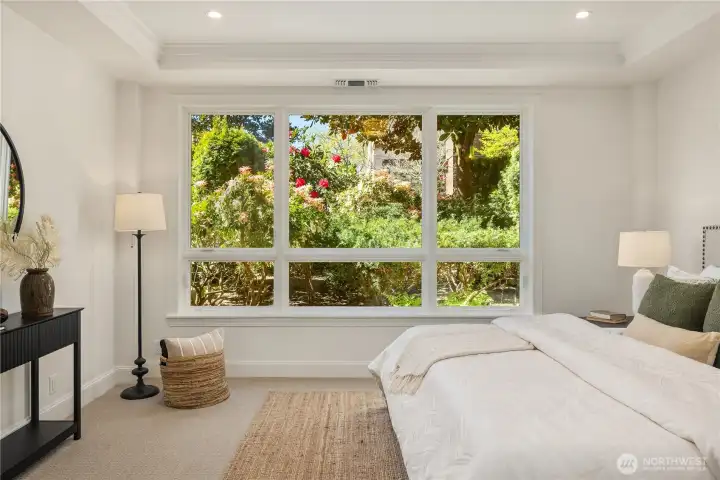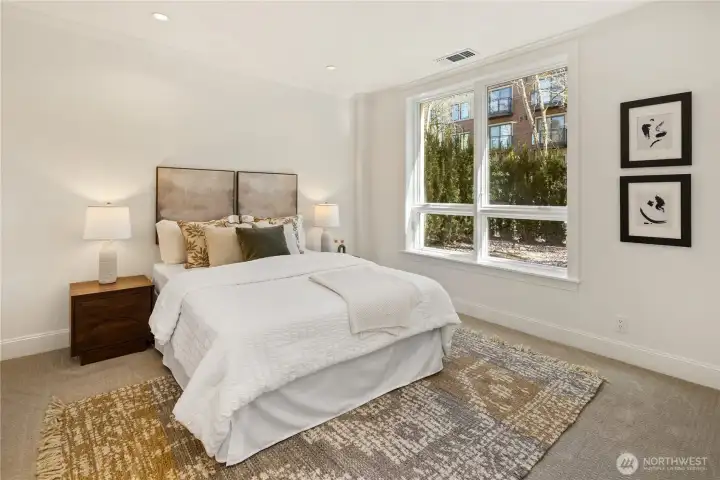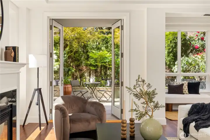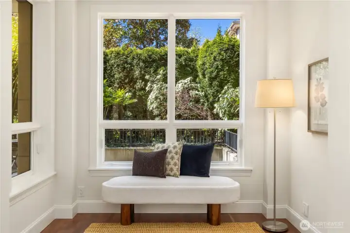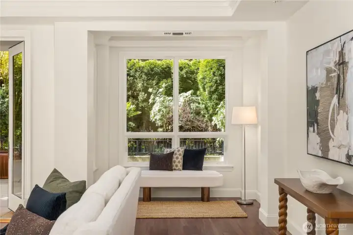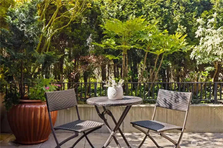 Harvard & Highland // Offering a garden-level residence within the secure and architecturally cohesive Harvard & Highland, ideally positioned on the north slope of Capitol Hill. The interiors are defined by a clean, functional layout with hardwood flooring, a well-appointed kitchen with stone surfaces and gas range, and open living and dining spaces that connect seamlessly to two private patios. Framed by mature landscaping, the outdoor spaces provide a rare sense of privacy and a true extension of the home within Seattle’s urban core, with enough scale and coverage to function as usable, day-to-day living areas. The primary suite is quietly situated with a walk-in closet and en suite bath, complemented by a secondary bedroom suitable for guests or a dedicated workspace. Both rooms are positioned with separation from the main living areas, supporting a practical and comfortable layout. Set within a gated, well-maintained building with classic brick and stone detailing, the residence reflects a level of construction and design consistency that is increasingly uncommon in newer product. The building’s scale and ownership profile read as stable and established, with a clear emphasis on long-term maintenance and cohesion. Positioned just above the city core, the location offers immediate access to Lake Union, downtown Seattle, and South Lake Union, while maintaining a quieter, more residential environment.