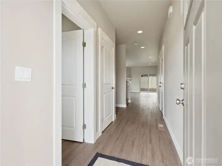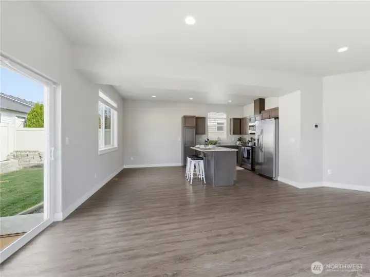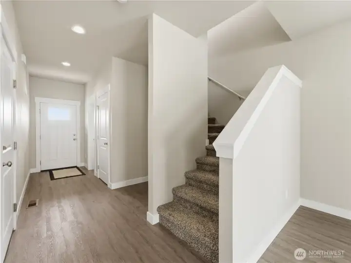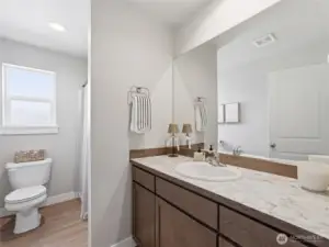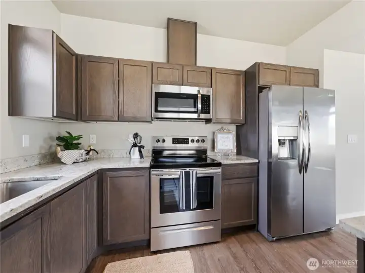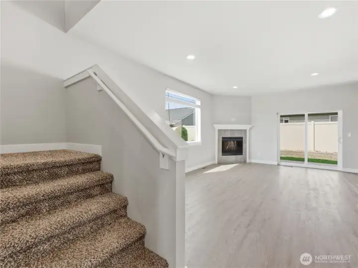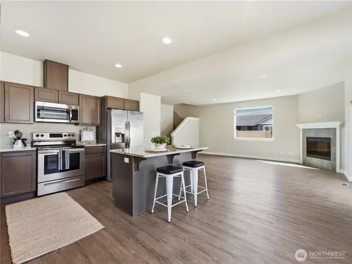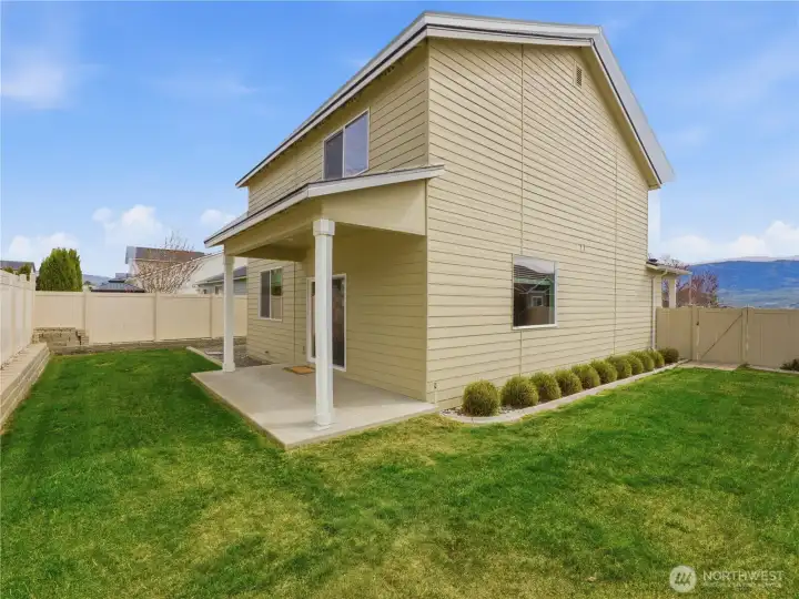 This adorable two-story home is better than new and truly move-in ready. The main level features durable luxury vinyl plank flooring, a cozy electric fireplace, and a convenient half bath. The open-concept kitchen shines with granite countertops, stainless steel appliances, and an eating bar—perfect for everyday living and entertaining. Upstairs, all three bedrooms, two full baths, and the laundry room are thoughtfully located together for added convenience. The spacious primary suite includes dual sinks, a large walk-in closet, and an additional closet for extra storage. Enjoy outdoor living with a covered patio, fully fenced backyard, and irrigation water. Ideally located near schools and shopping, this home also sits directly across from the neighborhood park—offering easy access to outdoor recreation. Don’t miss this fantastic opportunity!