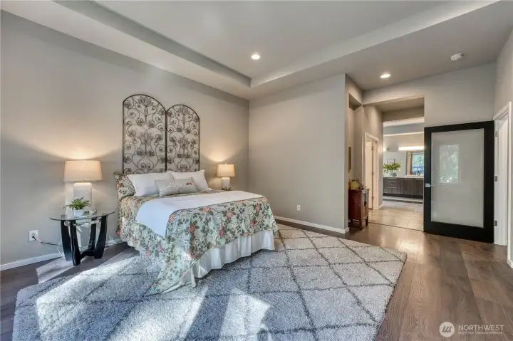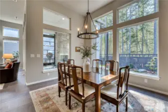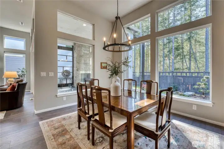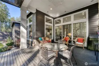 Turn key rambler is tucked away on a quiet dead-end street, backing to a peaceful greenbelt and is perfectly suited for effortless, low-maintenance living. Ideal for those seeking a lock-and-leave lifestyle, this one-story home offers both comfort and peace of mind . Welcomed by soaring ceilings and an abundance of natural light that flows effortlessly through the open-concept living spaces, showcasing elevated designer finishes throughout. An upgraded gourmet kitchen is the heart of the home—perfect for hosting guests or enjoying quiet evenings in. Relax year-round on the extended patio featuring a cozy outdoor fireplace and elegant shoji screen, all set against a tranquil, wooded backdrop that enhances privacy and serenity. The thoughtfully designed layout provides excellent separation, with guest rooms on the opposite side of the home from the spacious primary suite—ideal for visiting family and friends. Located in a welcoming, walkable neighborhood with parks and trails, and just minutes to medical facilities, shopping, freeway access and downtown Gig Harbor 3 bedrooms | 2.5 baths | 2,429 sq ft of easy, refined living.