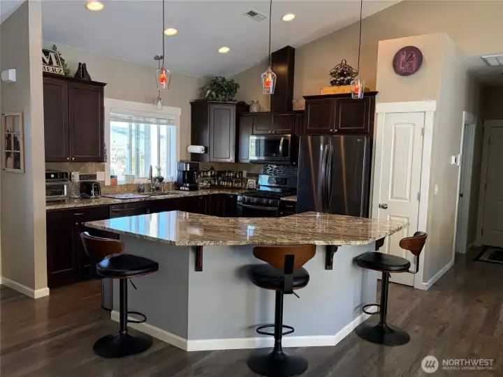 An Exceptional One Level Estate with Sweeping Valley Views and Resort Style Living Set on 7.4 private, serene acres, this immaculate 2016 energy efficient home offers refined one level living with sweeping views of the Wenas Valley. The 1,800 sq ft residence features an open concept layout with vaulted ceilings, 3 bedrooms, an office/den, and 2.5 baths. The primary suite is a true retreat with a spacious closet and a luxurious five piece bath with heated tile floors, while bedrooms 2 and 3 sit on the opposite side for added privacy. Resort style outdoor living defines the property. A 16' x 36' heated inground pool anchors the backyard, surrounded by expansive covered patios, an entertainment area, and low maintenance turf. The grounds include established raspberries, three lawn areas, timed irrigation, and ample open acreage ready for future use. Utility and convenience shine with a full service RV pad offering 50 amp power, water, and sewer, plus an additional full service 30/50 amp hookup at the house. An invisible fencing system allows pets to roam across 2+ hillside acres. Combining rural tranquility with modern comfort, this turnkey estate delivers privacy, views, and a vacation like atmosphere—just minutes from town. Note: Property has been approved by Yakima County for subdivision. Yakima County is in the final stages of recording documents. Originally 10.35 acres, it will be 7.4 acres once documents have been recorded.