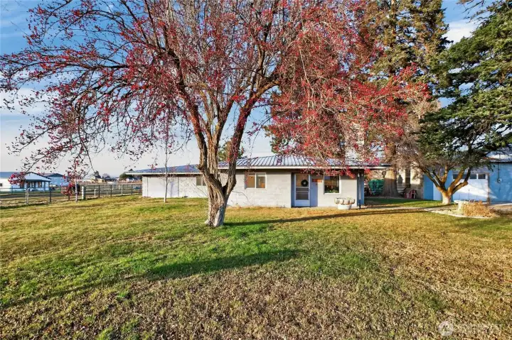 Welcome to your private slice of country paradise—where wide-open skies meet modern convenience. This stunning 4.58-acre property showcases breathtaking 360-degree mountain views, creating a spectacular backdrop from sunrise to sunset. Fully fenced and fully irrigated, the usable acreage is thoughtfully set up for horses, cattle, or other farm animals—perfect for hobby farmers, equestrians, or anyone seeking room to roam and embrace the country lifestyle. The massive 3,744 sf. (approxiamte) shop—complete with a dedicated tack room and spacious storage loft—along with an additional 1,350 sf. (approximate) lean-to, offers exceptional space for equipment, vehicles, tools, and all other recreational toys. The cozy 3-bedroom, 2-bath home features a welcoming fireplace that greets you as you enter, plus an additional flex room offering versatile space for an office, guest room, or hobby area. The covered patio offers amazing views and an abundance of shade with cool breezes in the summer. Lovingly maintained and proudly owned through all these years by just one family. Best of all, this country retreat is located just minutes from town—close to shopping, dining, wineries, schools, and everyday amenities—so you can enjoy the best of rural living without sacrificing convenience. Opportunities like this don’t come along often—come experience the freedom and beauty this exceptional property has to offer.