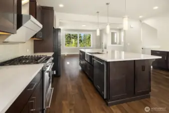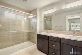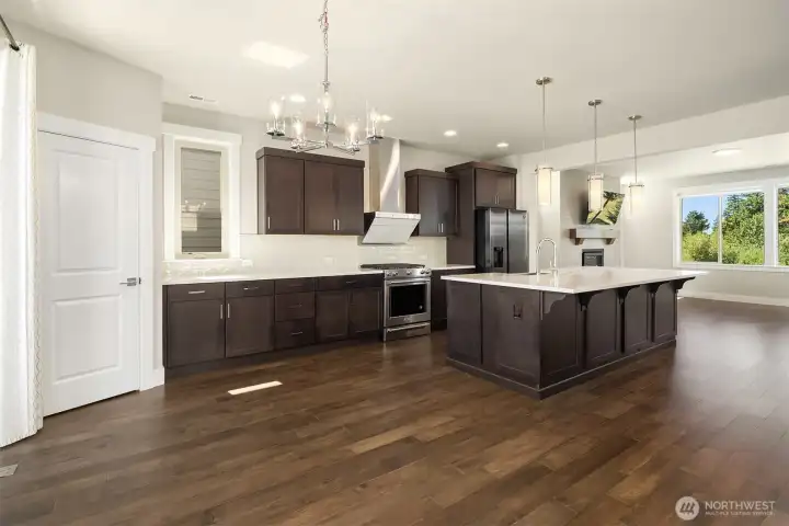 Welcome to Lake Stickney, where modern design meets seamless living. This spacious and thoughtfully crafted home features an open-concept floorplan filled with natural light throughout. Offering 4 bedrooms and 3.5 baths, the residence backs to a serene greenbelt, creating a peaceful, park-like backdrop. The gourmet kitchen is designed to impress, showcasing slab quartz countertops, a generous center island, and a walk-in pantry, ideal for both everyday living and entertaining. Rich hardwoods and high-efficiency heating and air conditioning enhance comfort and style throughout. Retreat to the elegant primary suite, complete with a walk-in closet, dual vanity, and soaring ceilings. Conveniently located with easy access to shopping, dining, I-5, I-405, and transit, this home offers the perfect balance of tranquility and connectivity.