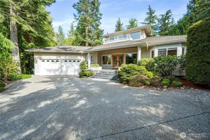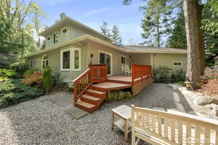 Impeccably maintained Semiahmoo gem with a private yard in the premier gated Boundary Ridge neighborhood. Quiet & peaceful cul-de-sac location with welcoming west facing deck that captures sunsets & water view. Custom front doors set the tone and you'll love the lay out with the dual suites, one suite is located on each level of the home...the ideal set up for multi generational living. Spacious upper level suite with water view deck, sitting area and three quarter bathroom. Luxurious main level suite with walk in closet, soaker tub and walk in shower. Flexible floor plan with living room and separate bonus or dining room on main level. You don't often find yards like this with a large deck for entertaining, fruit trees and perennials blooming throughout the year...simply stunning. Easy access to the famed Semiahmoo Resort & Spa, Golf & Country Club, Marina and parks. Don't miss the newly re-built beach access stairs at the end of Shearwater...just a few minutes away by foot.
