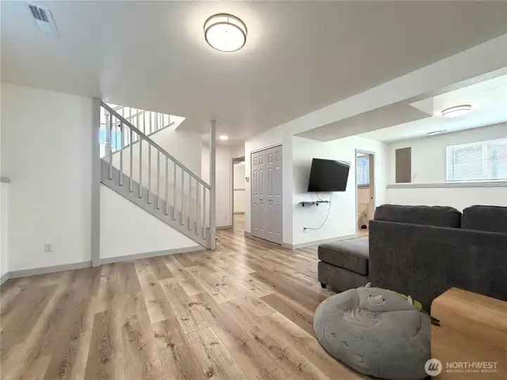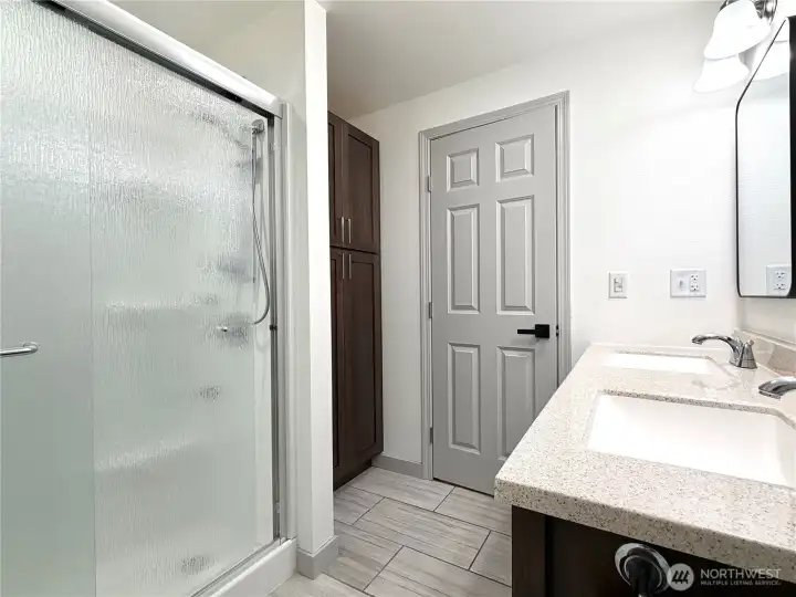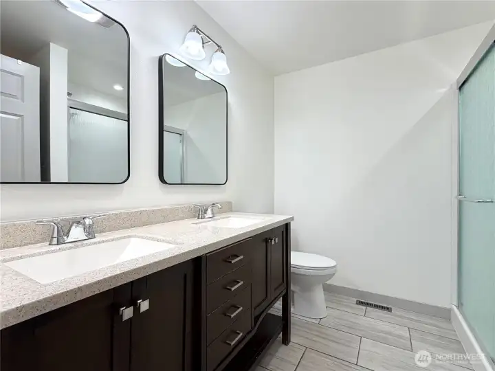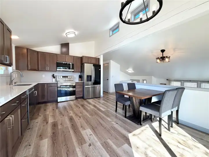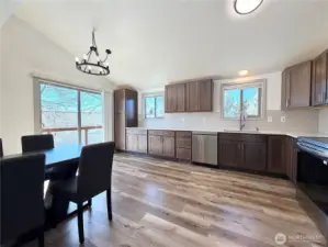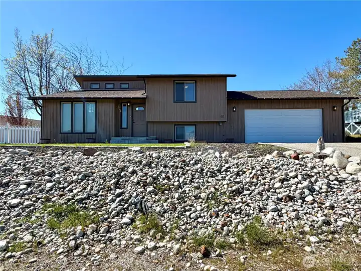 Omak - Recently remodeled and move-in ready! This spacious 3 bedroom/1.75 bath, split-entry home offers over 1,700 sqft of well-designed living space. The main level welcomes you with a sunken living room featuring vaulted ceilings and expansive rectangular windows on two walls, filling the space with natural light. The beautifully updated kitchen with clerestory windows includes all stainless steel appliances, subway tile backsplash, double farmhouse sink, abundant cabinetry and generous counter space, plus a dining area with a sliding door leading to an impressive 400+ sqft wood deck; perfect for entertaining! Two bedrooms, linen and coat closets and a stylish 3/4 bath with double vanity and oversized shower complete the main floor. Downstairs, enjoy a private primary bedroom with a Jack-and-Jill full bath that conveniently includes the washer and dryer, a large family room with garage access and additional storage. A backyard with vinyl fencing offers space to relax or play. An attached 600+ sqft 2-car garage includes work benches and backyard access. Heat pump. Connected to city utilities. Located within close proximity to town amenities. This home offers the space, updates and layout you’ve been looking for!