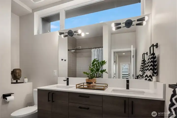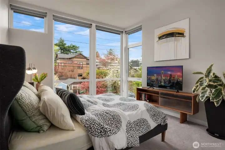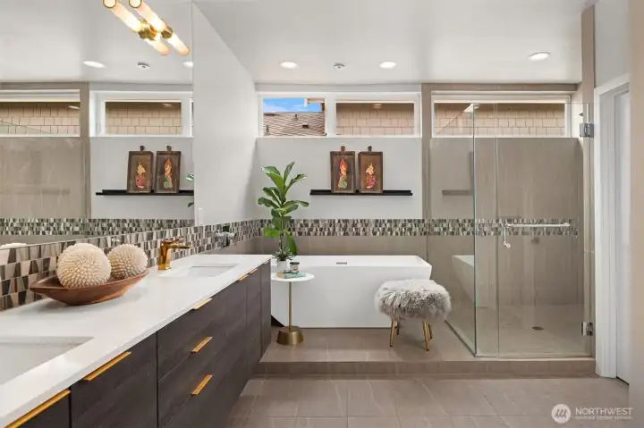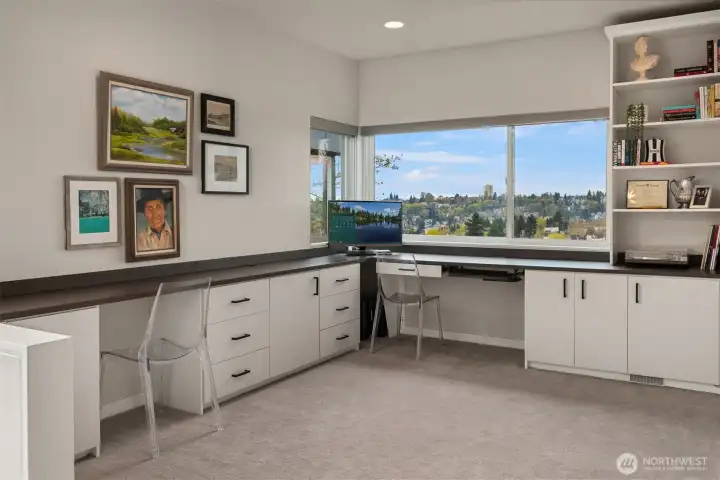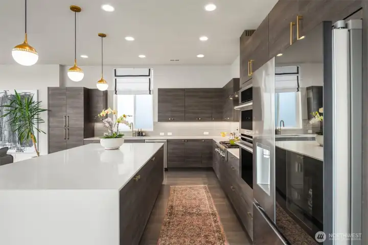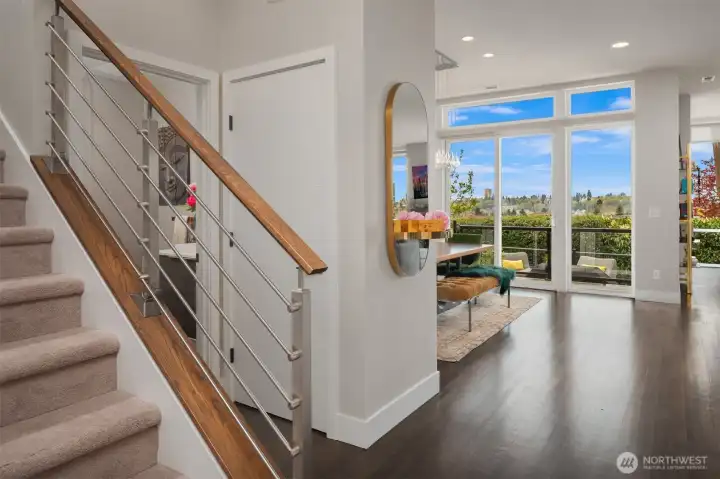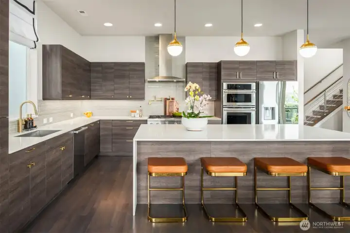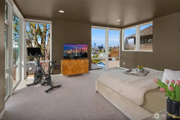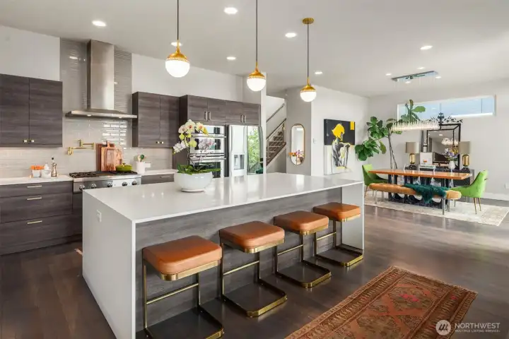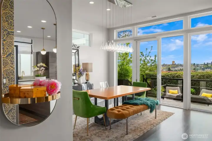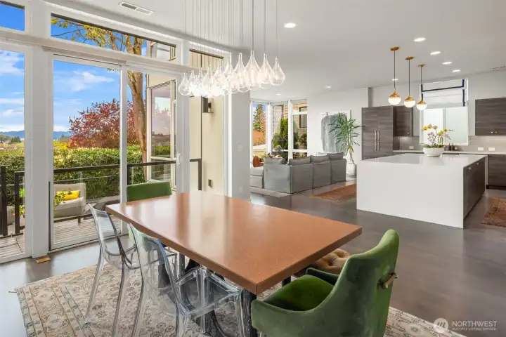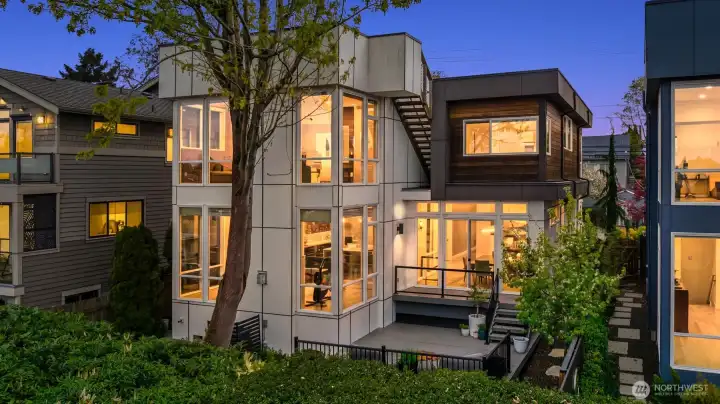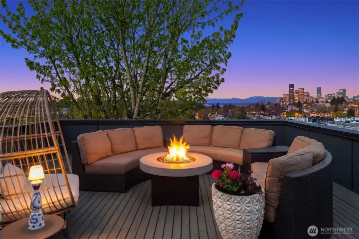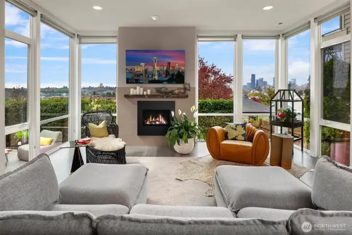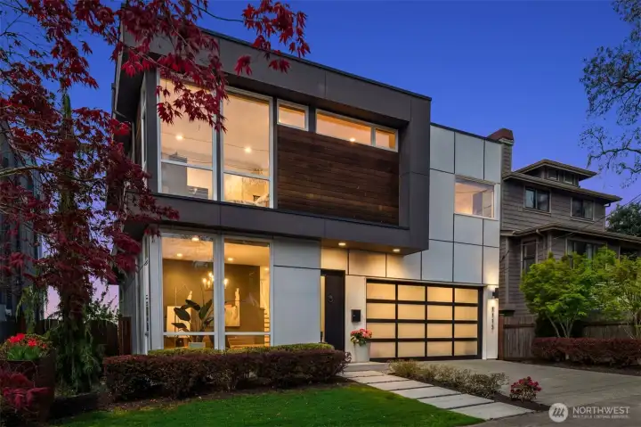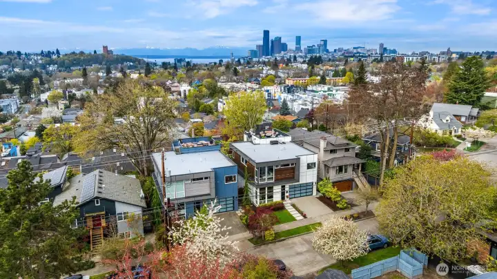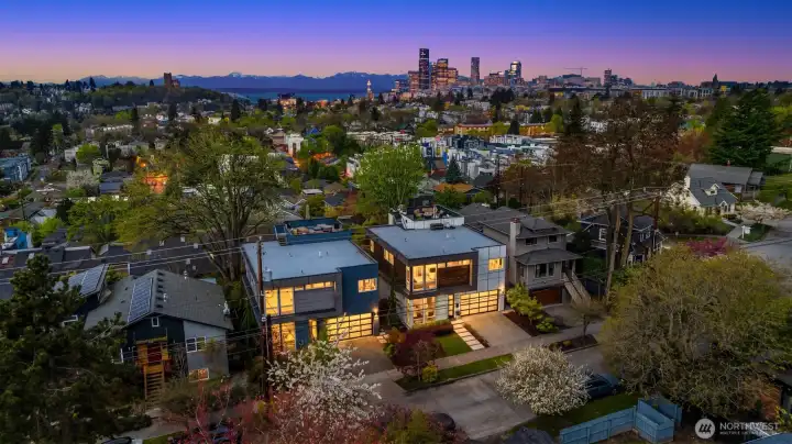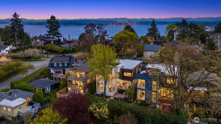 A refined expression of modern classic design, this residential masterpiece is gracefully perched along the western slope of Leschi, where soaring 10-foot walls of glass frame sweeping vistas of the city skyline and Olympic Mountains, complemented by a rooftop deck with breathtaking 360-degree views of downtown Seattle, Bellevue, Lake Washington, and beyond.Upon entry, a luminous sitting room welcomes you—an intimate yet opulent setting for conversation and cocktails. The home unfolds into a magnificent open-concept living space, where expansive views and radiant Seattle sunsets create a daily sense of awe.At its heart, the kitchen is both striking and functional, anchored by an extraordinary 50-foot white quartz island—perfect for elevated entertaining—alongside abundant custom cabinetry and generous counter space. An elegant dining area and spacious living room complete the home’s seamless blend of modern sophistication.Step outside to a serene outdoor living retreat, where a private deck invites relaxation and effortless hosting. As evening falls, retreat to the expansive primary suite, where panoramic views over the city and Puget Sound provide a tranquil, ever-changing backdrop.Two additional bedrooms, a generous office, laundry room, and guest bath complete this exceptional residence—an exquisite balance of luxury, comfort, and timeless design in one of Leschi’s most coveted settings.