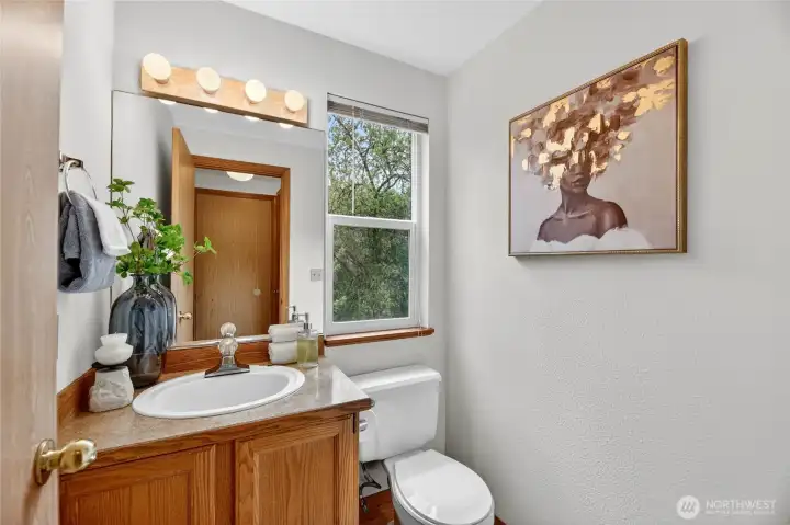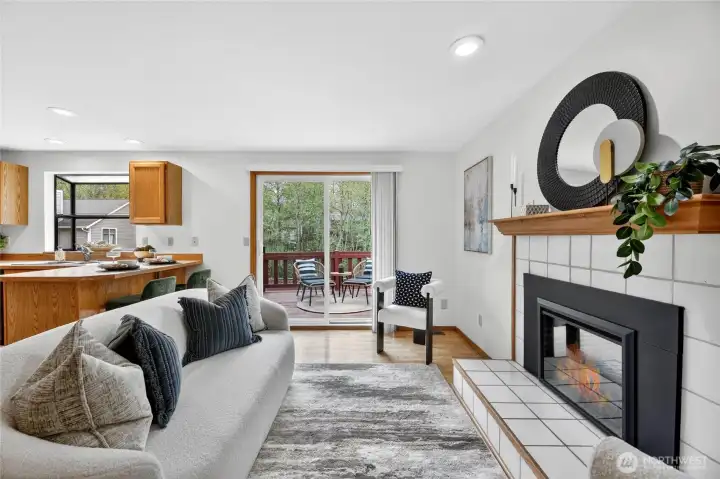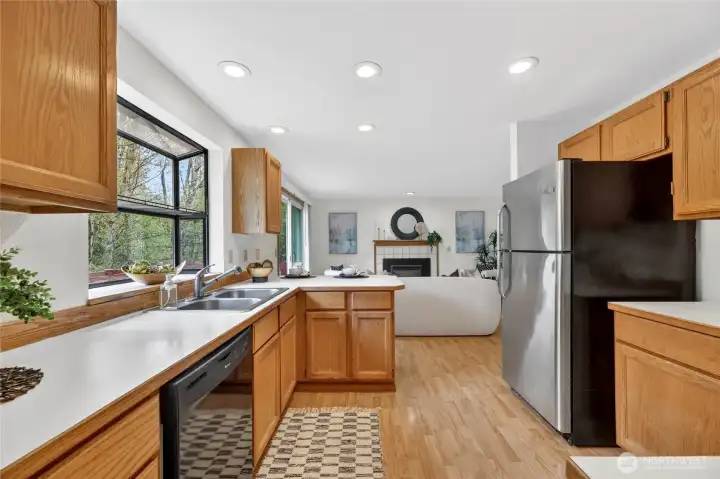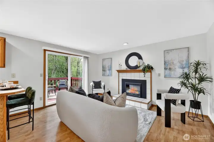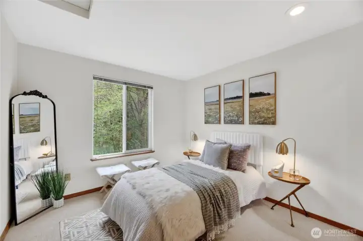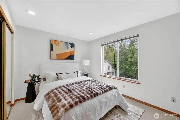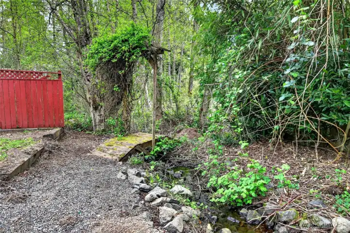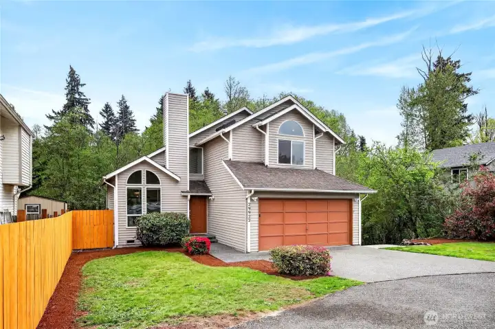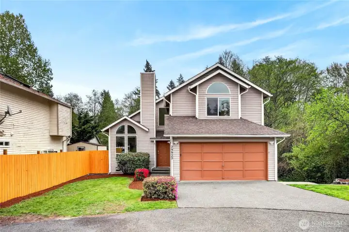 Fall in love with this 1990 classic, refreshed for 2026! Located on a quiet greenbelt with its own peaceful creek next door, this 3-bedroom/2.5 bath home offers the perfect balance of "close to it all" and "away from it all." Fresh, modern interiors: new carpet + designer paint throughout. The floor plan is designed for connection, featuring an open kitchen and family room anchored by a cozy fireplace, create the heart of the home, that flows seamlessly out to a deck. Listen to the gentle flow of water and enjoy the view of your secluded yard backing to nature. The primary suite upstairs serves as a true retreat with vaulted ceilings, skylights, walk in closet and bath and a charming built-in cozy nook for reading. With a two-car garage, plenty of storage and ample off-street parking and just minutes from everything you need this home checks every box for style, comfort, and convenience. Conveniently close to I-5 & 167, transit, parks, lakes & schools.