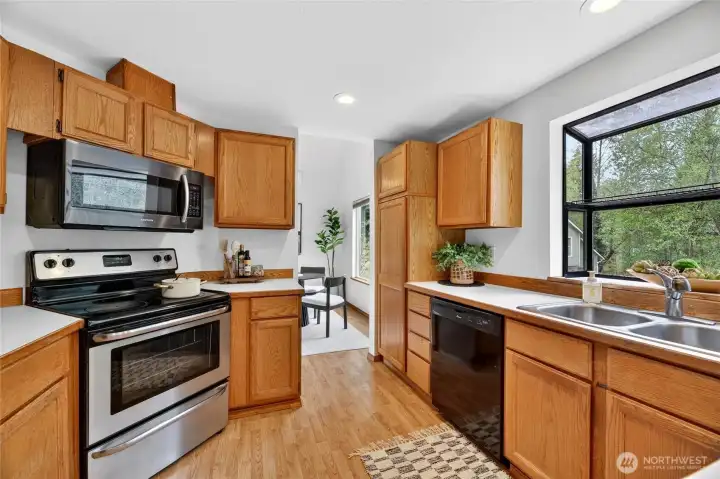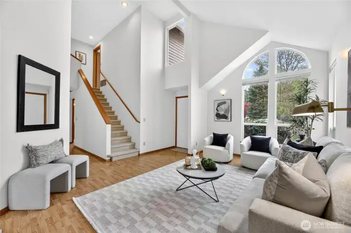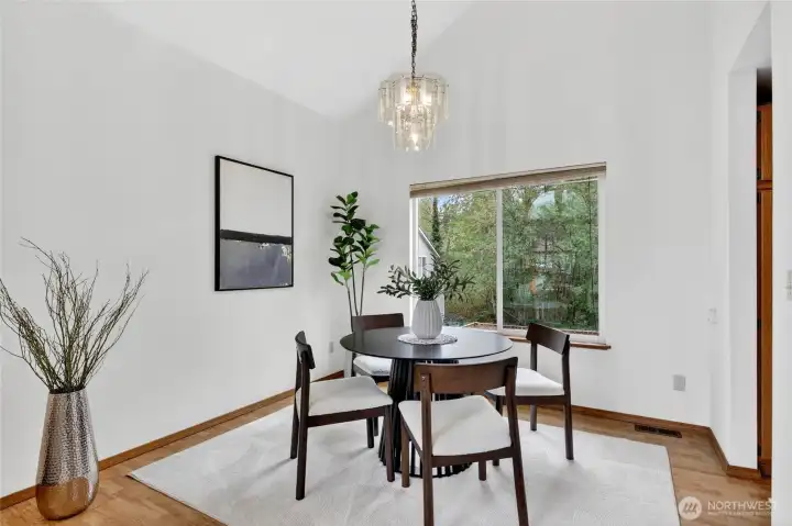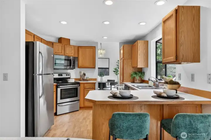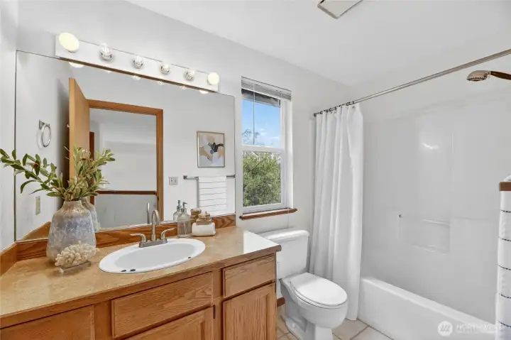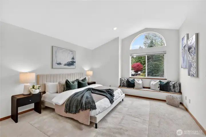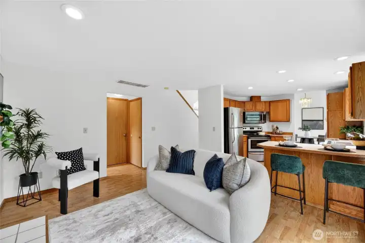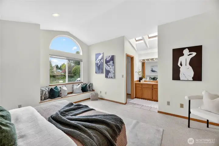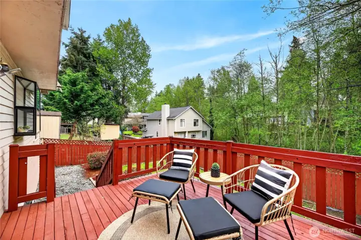 Fall in love with this 1990 classic, refreshed for 2026! Located on a quiet greenbelt with its own peaceful creek next door, this 3-bedroom/2.5 bath home offers the perfect balance of "close to it all" and "away from it all." Fresh, modern interiors: new carpet + designer paint throughout. The floor plan is designed for connection, featuring an open kitchen and family room anchored by a cozy fireplace, create the heart of the home, that flows seamlessly out to a deck. Listen to the gentle flow of water and enjoy the view of your secluded yard backing to nature. The primary suite upstairs serves as a true retreat with vaulted ceilings, skylights, walk in closet and bath and a charming built-in cozy nook for reading. With a two-car garage, plenty of storage and ample off-street parking and just minutes from everything you need this home checks every box for style, comfort, and convenience. Conveniently close to I-5 & 167, transit, parks, lakes & schools.